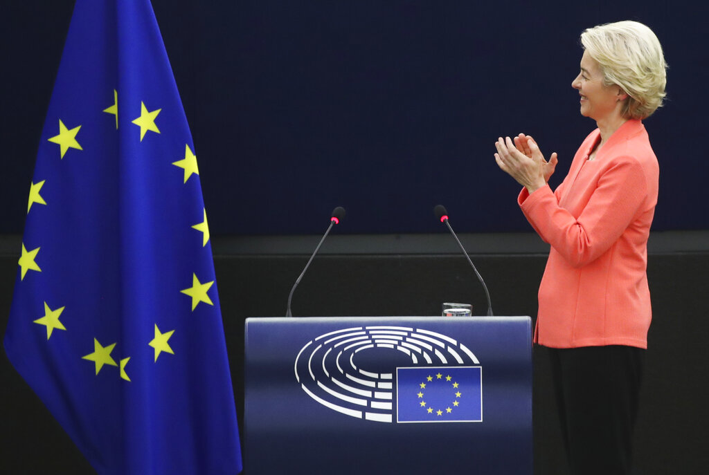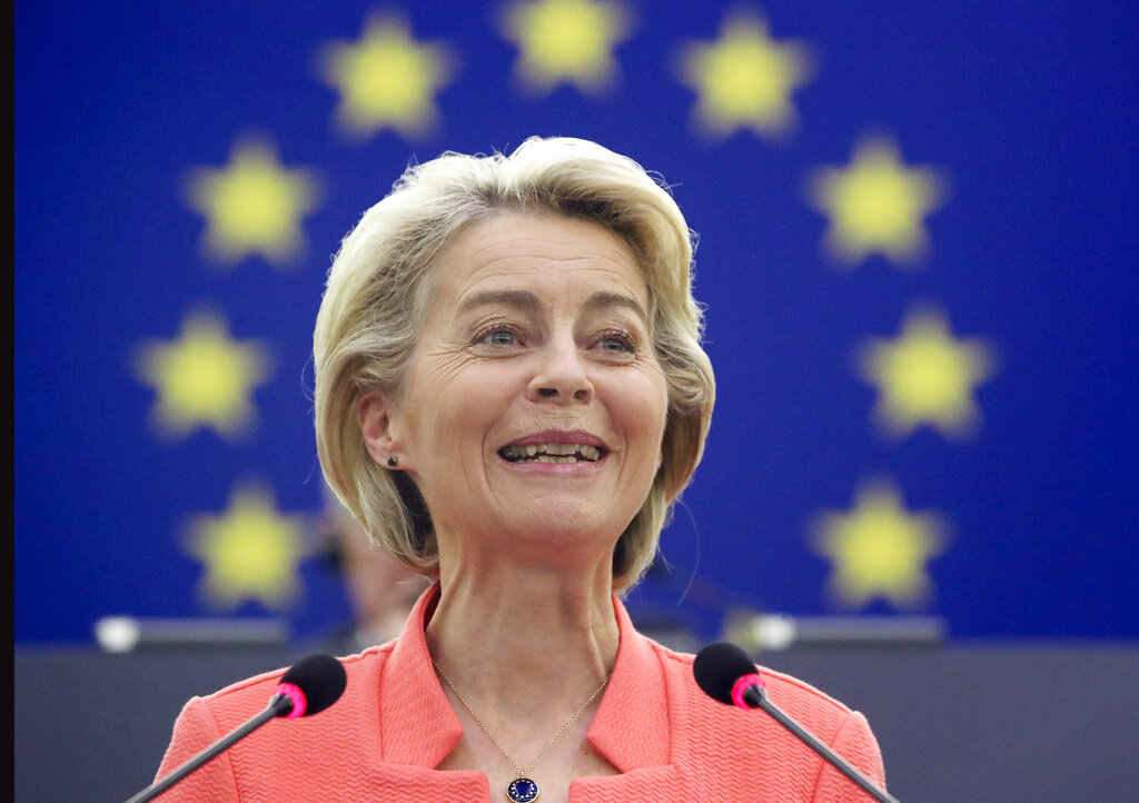 La presidente della Commissione europea, Ursula von der Leyen, ha mostrato soddisfazione riguardo ai risultati raggiunti nell’ultimo anno, specialmente nell’ambito della lotta contro la pandemia, e ha sottolineato l’importanza di aver agito insieme come Unione: «vedo una forte anima in tutto quello che facciamo». In particolare, ha ricordato che oltre il 70% della popolazione adulta europea è stata completamente vaccinata, e che l’Ue è stata l’unica a condividere la metà della sua produzione dei vaccini con il resto del mondo, principalmente con i Paesi più poveri.