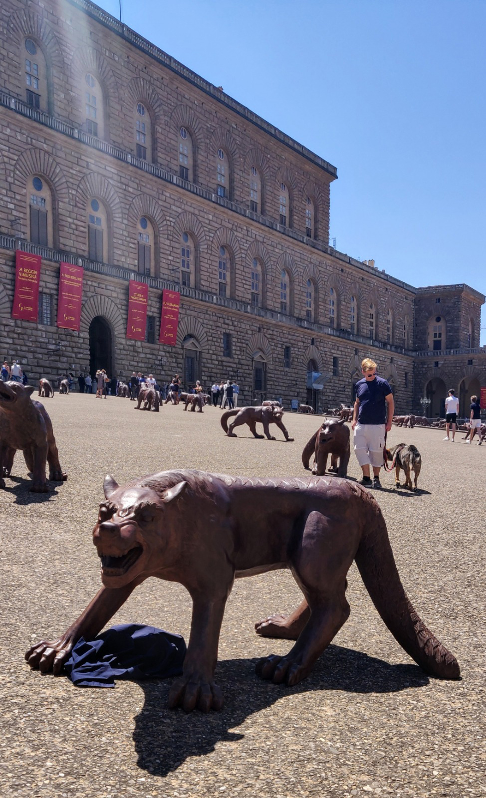 Cento grandi lupi dell’artista cinese Liu Ruowang occuperanno due prestigiose piazze della città di Firenze. Le opere saranno esposte nel capoluogo toscano a partire dal 13 luglio e fino al 26 ottobre in due spazi di prestigio: Piazza Pitti e Piazza Santissima Annunziata, e si misureranno con l’idea di armonia compresa nell’Umanesimo. I lupi che compongono questa installazione fronteggeranno due edifici emblematici del Rinascimento, Palazzo Pitti e lo Spedale degli Innocenti, dove il grande Filippo Brunelleschi ebbe modo di mettere in pratica la sua concezione dello spazio, delle proporzioni, del ritmo architettonico.