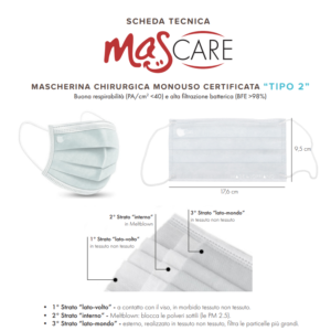 Un’altra delle caratteristiche di MasCare è che si tratta di un prodotto 100% Made in Italy. Secondo lo studio del barometro Kantar Covid-19 – Wave3, il principale studio dell’influenza del Covid-19 sul comportamento dei consumatori, il 70% degli italiani attualmente preferisce acquistare prodotti locali. Frutto di questo periodo di trasformazione mondiale è stata la possibilità di riscoprire alcuni valori universali come la sostenibilità, la sensibilità al consumo locale e il rispetto dell’essere umano. In questo modo, dal cuore della Toscana la MasCare si propone come un modo di contribuire al bene comune attraverso la solidarietà.