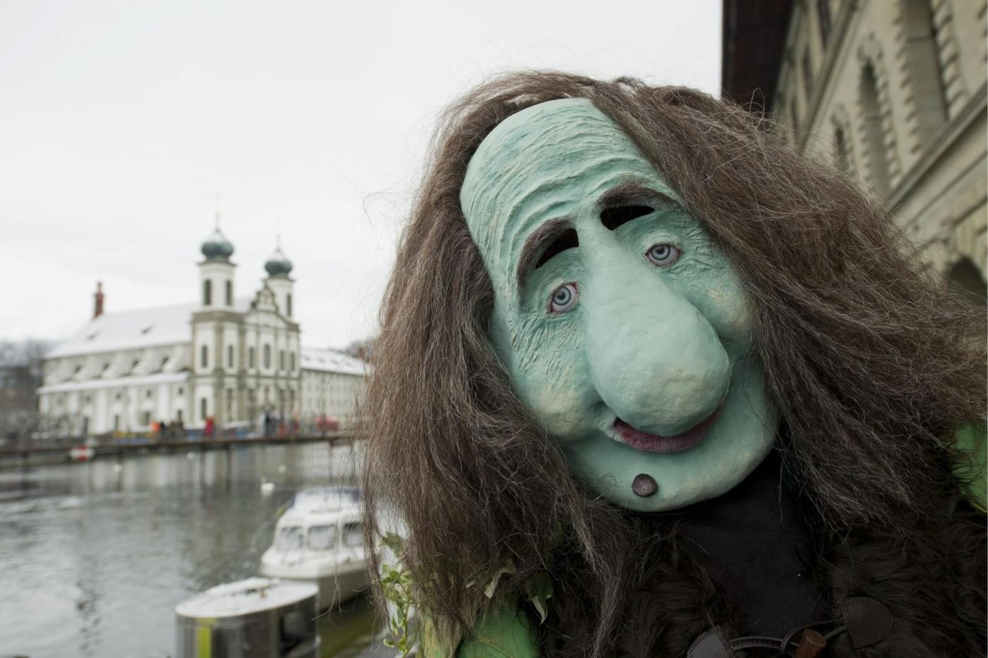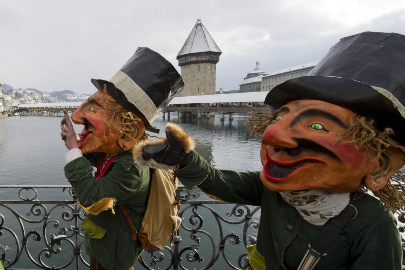 A Lucerna in Svizzera il carnevale si festeggia all'insegna della tradizione, con le tipiche maschere di Basilea: mostri e strane creature (foto Ap).