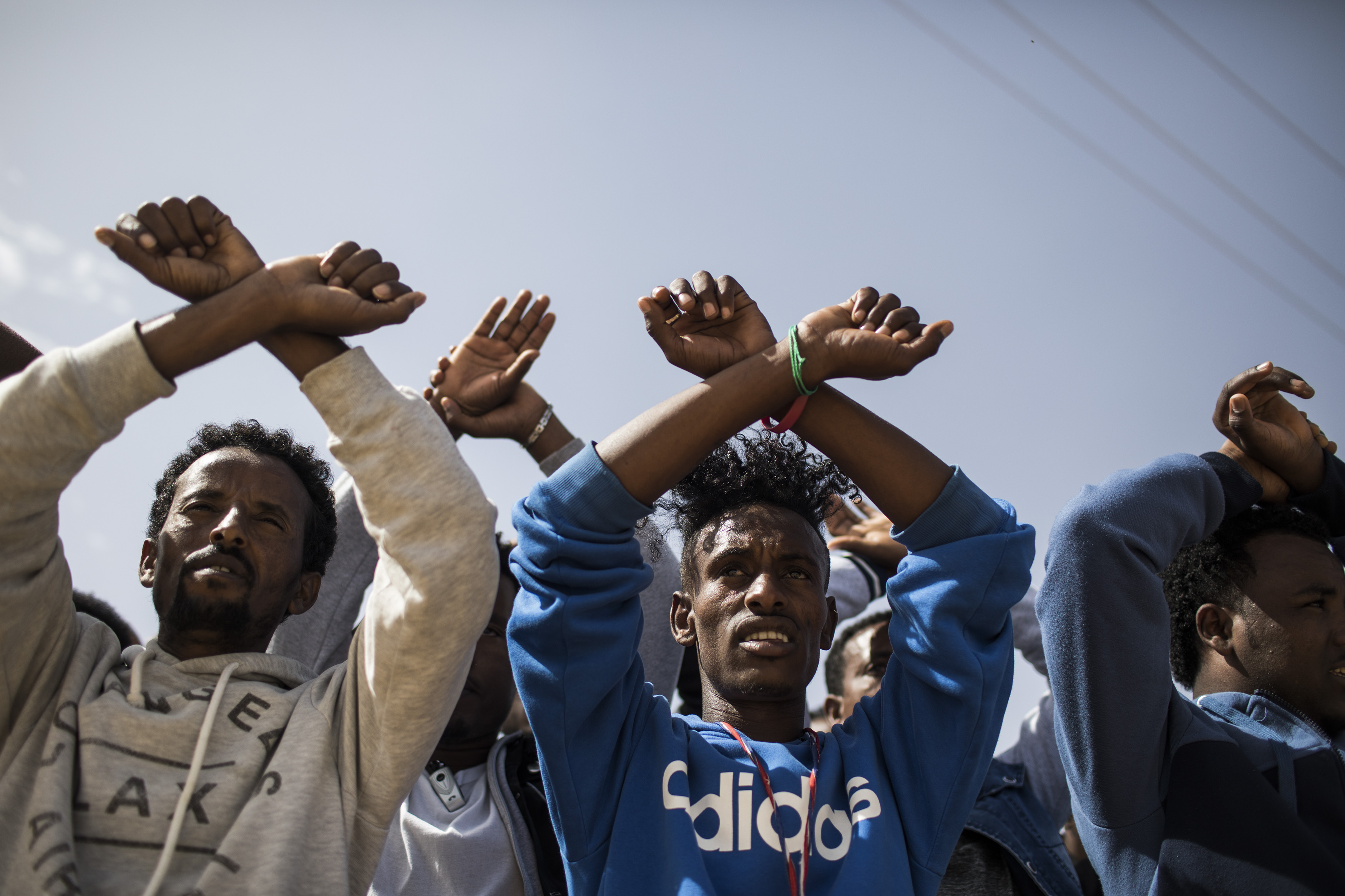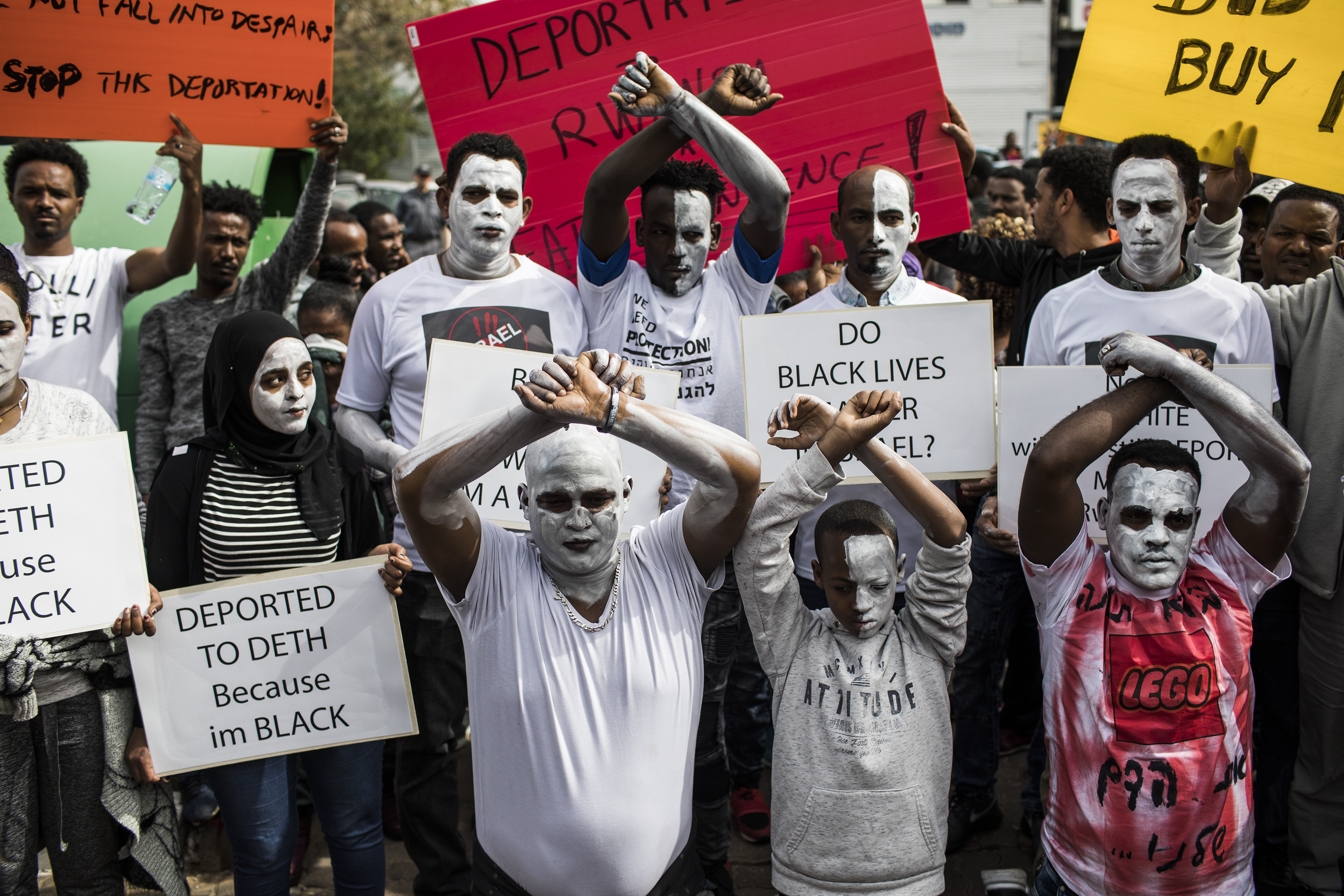 A fine marzo 2018 migliaia di migranti sudanesi ed eritrei, che sono arrivati illegalmente in Israele tra il 2006 e il 2012 , si trovano davanti alla scelta tra la detenzione in carcere o il trasferimento in Ruanda. Parte della società civile israeliana sta manifestando (foto Ap) assieme ai migranti contro questa decisione del governo di Benyamin Netanyahu.