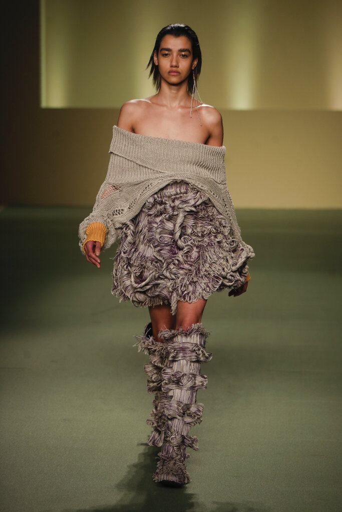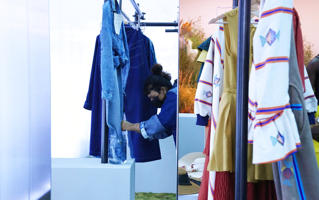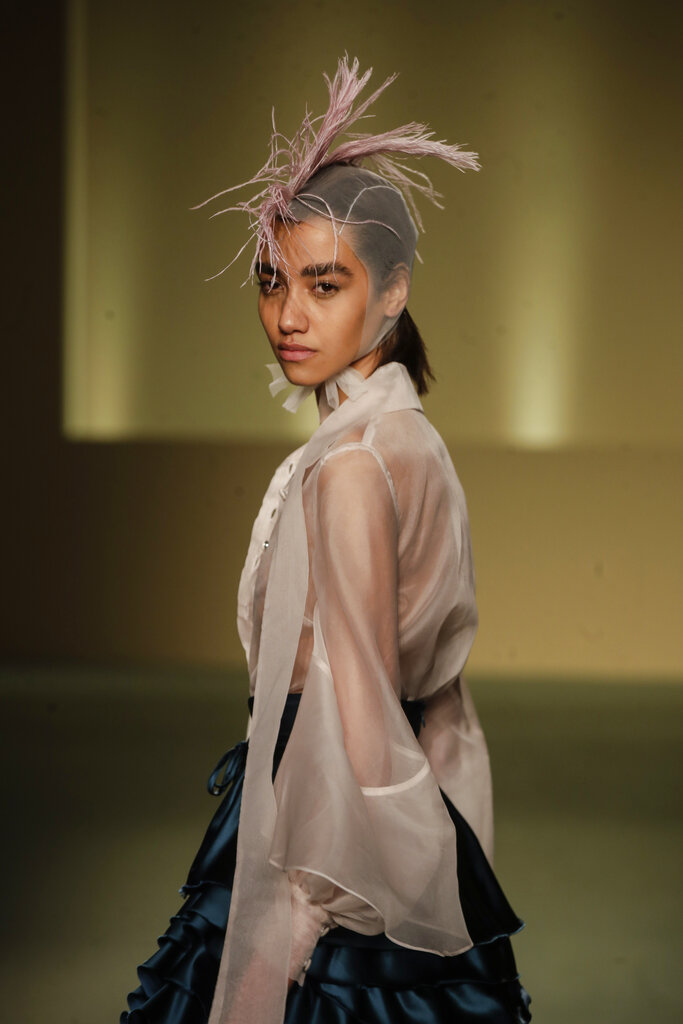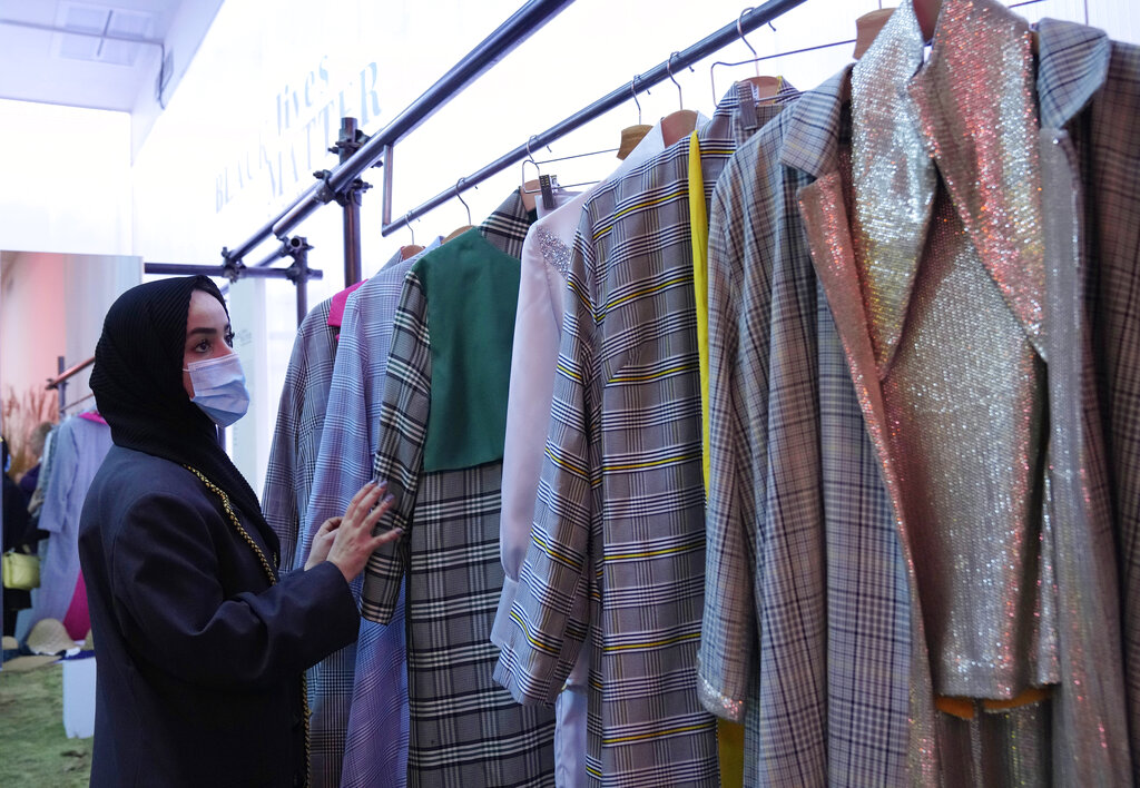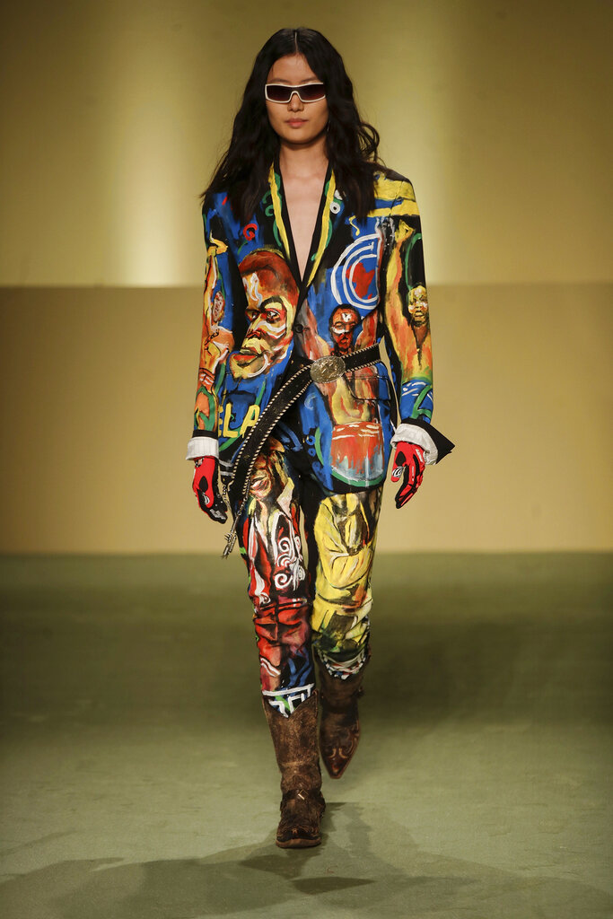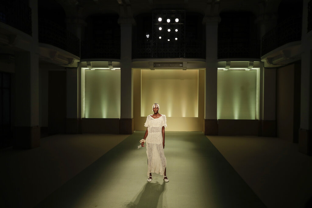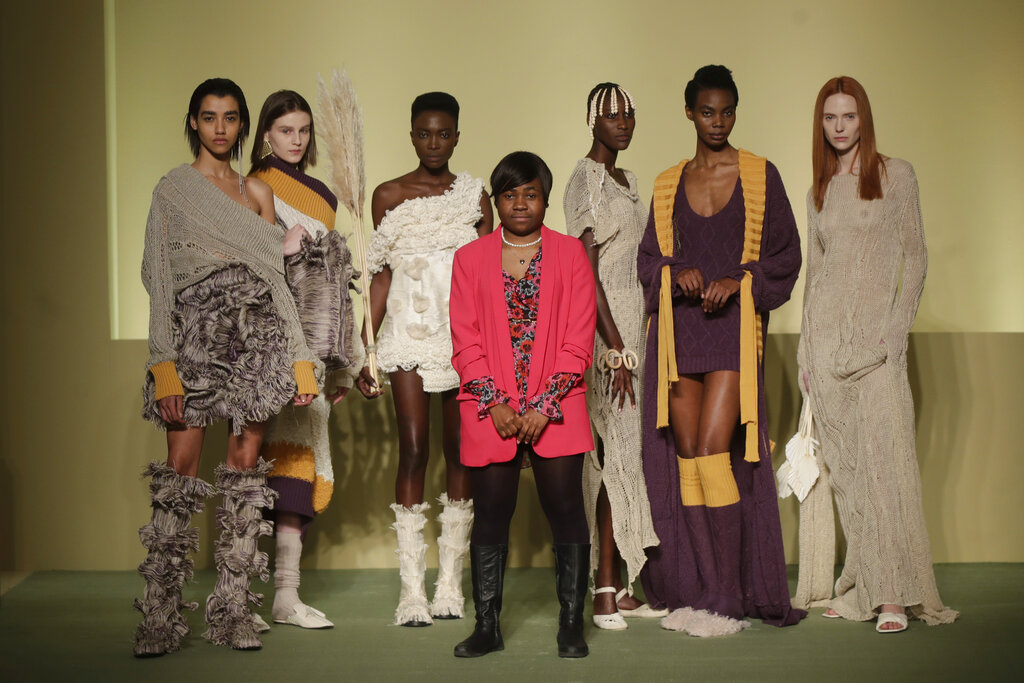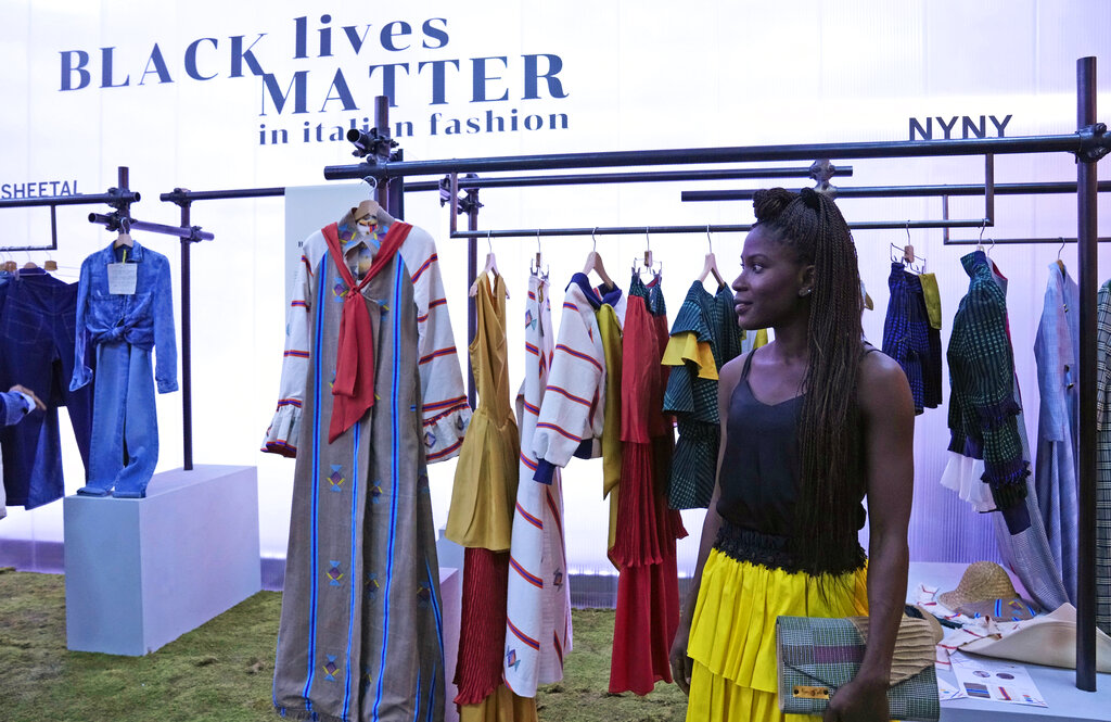 Durante la Milano Fashion Week, cinque stilisti italiani di origine africana hanno fatto il loro debutto in passerella con la sfilata collettiva Black Lives Matter Autunno/Inverno 2021/22. Il loro lavoro è all’insegna del “We are Made in Italy”: dopo aver coltivato sogni ritenuti impossibili nelle loro terre natali, hanno affrontato notevoli ostacoli anche nella loro Italia adottiva, ma sono riusciti a sfondare. (AP Photo/Luca Bruno)