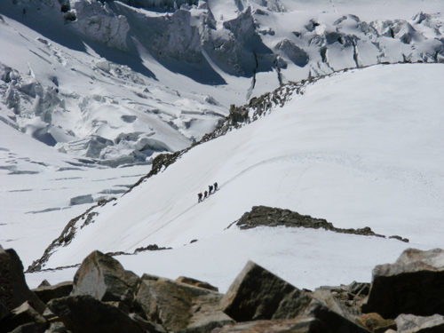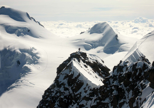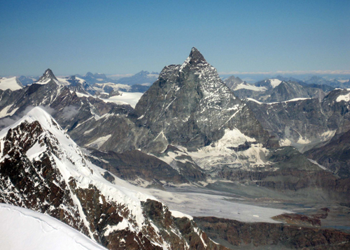 Cresta del Lyskamm (Gruppo Monte Rosa). Naso del Lyskamm (Gruppo Monte Rosa). Gran Capucin (Gruppo Monte Bianco). Cervino. Sotto il ghiacciaio Aletschgletscher (Alpi Svizzere).