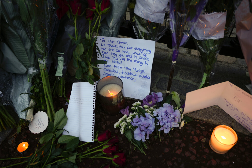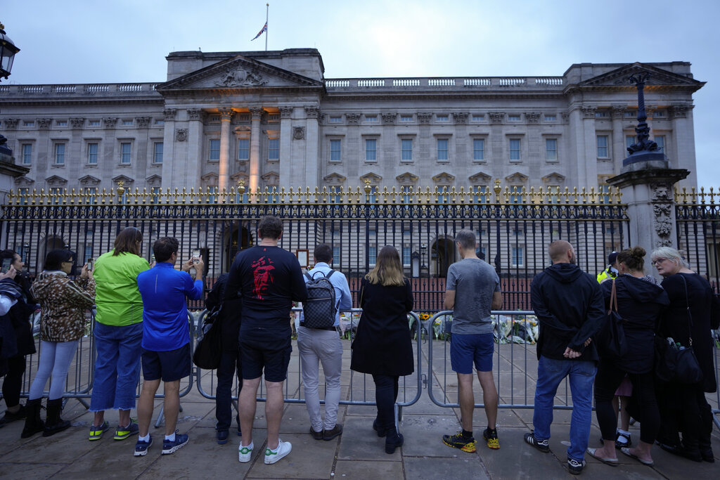 Intanto, nella capitale del Regno Unito migliaia di cittadini si radunano davanti a Buckingham Palace con mazzi di fiori e candele accese in memoria della regina, mentre dall’alto il cielo sembra salutarla con un doppio arcobaleno.