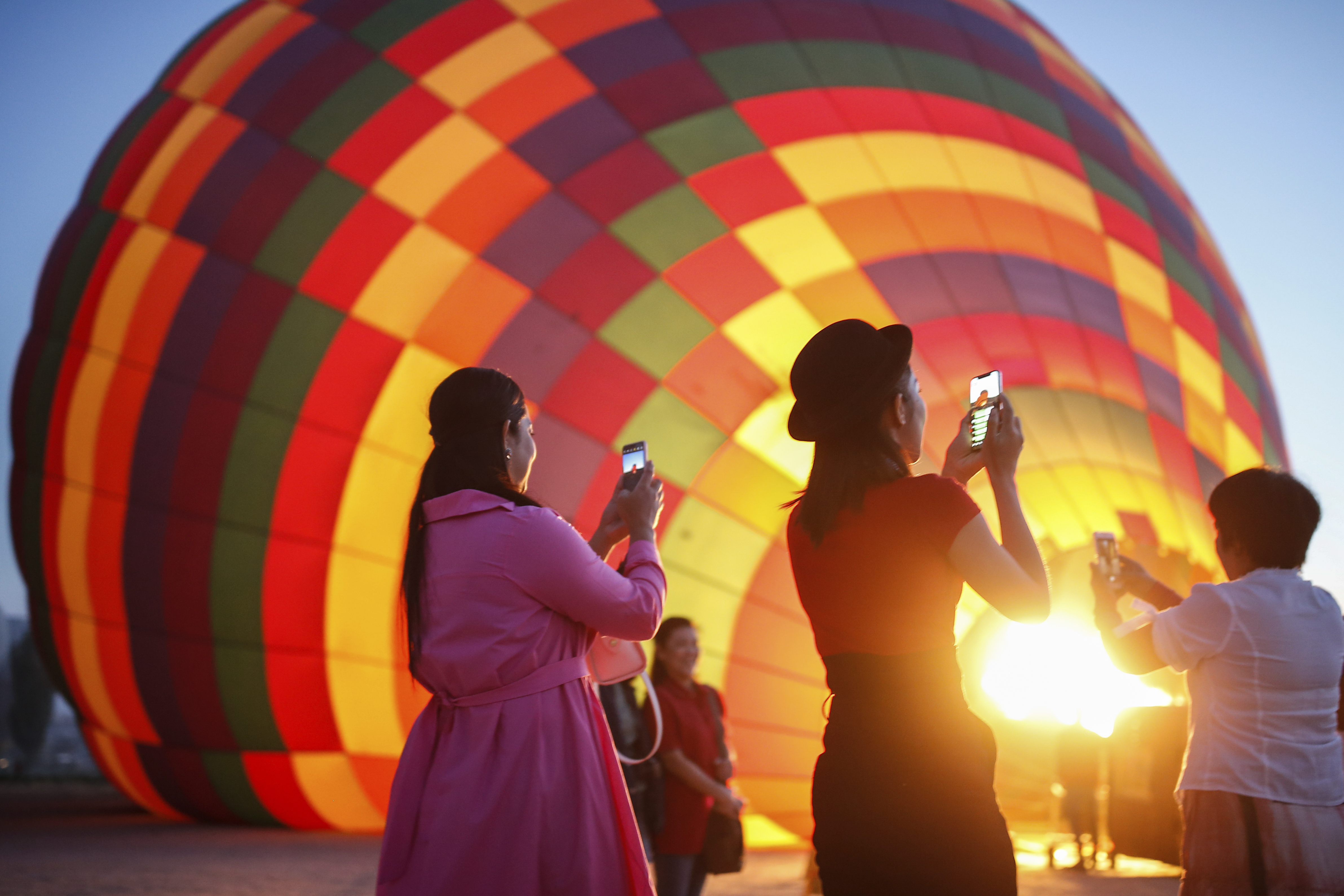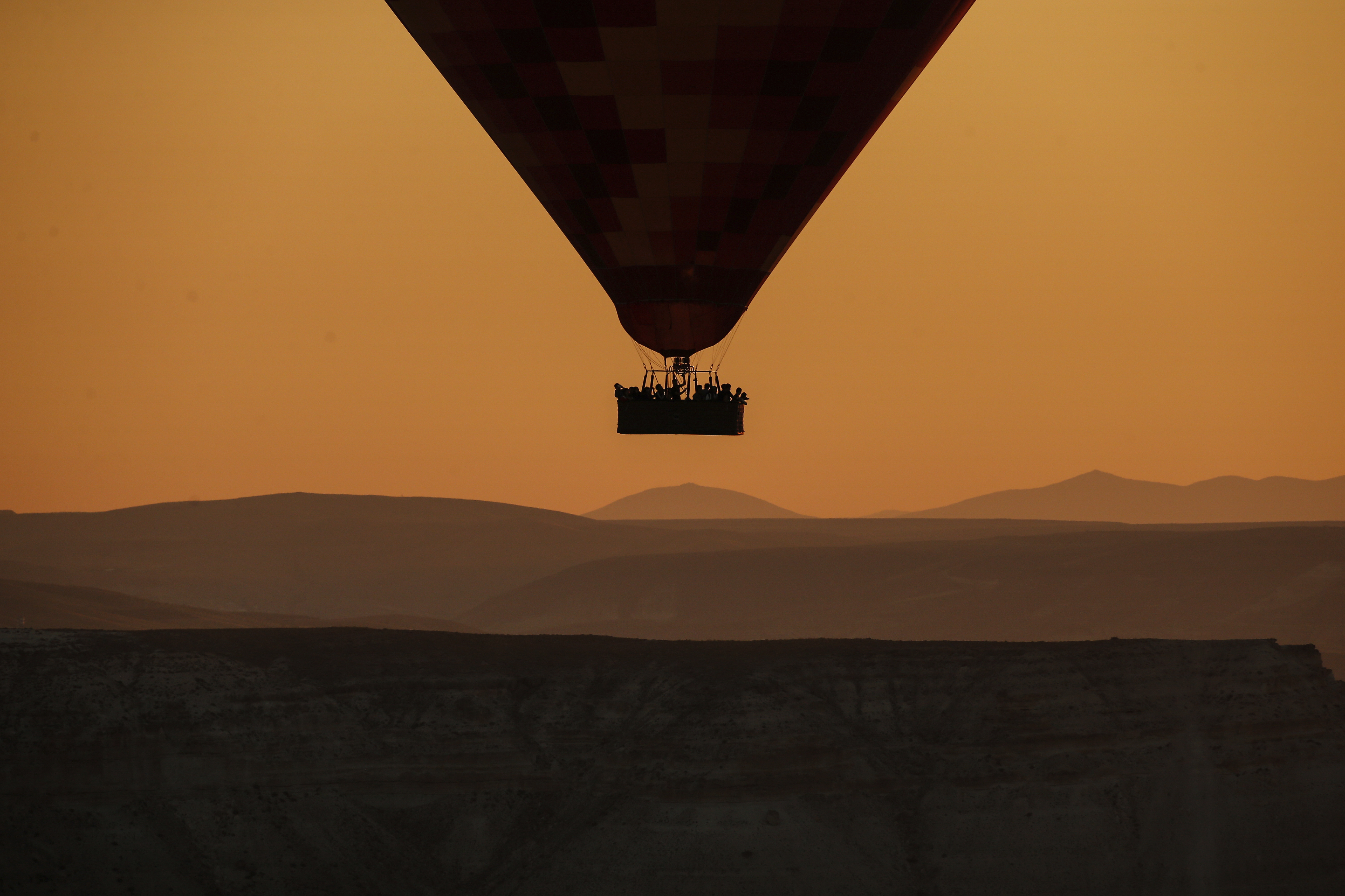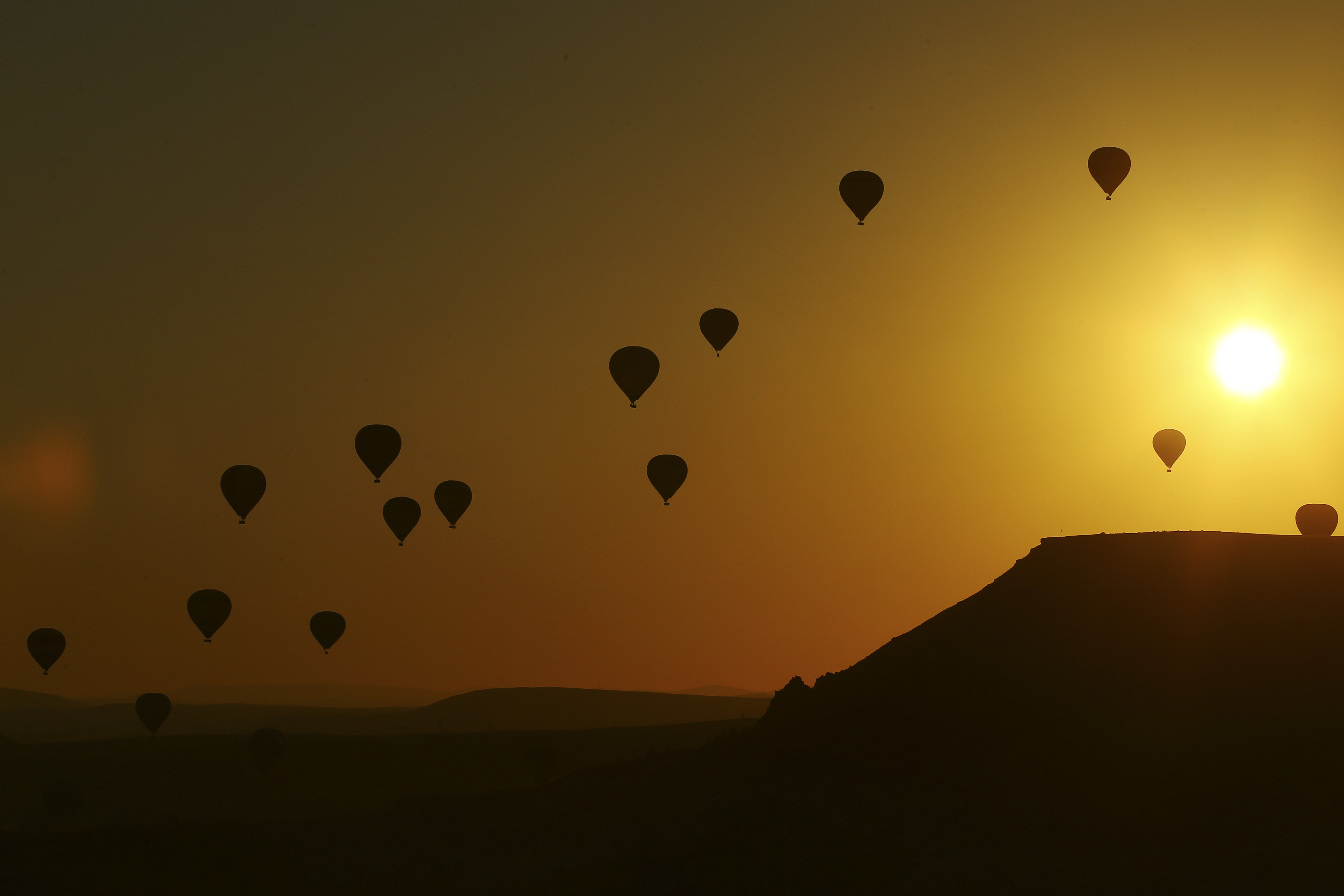 I turisti, si sa, vogliono sempre sperimentare qualcosa di unico e speciale, da raccontare al ritorno dai viaggi. In Cappadocia, nella Turchia centrale, hanno pensato di trasportare in cielo i turisti, a bordo di mongolfiere che lentamente sorvolano le formazioni rocciose e le gole increspate. In questo modo possono godere, senza fretta, di una vista dall’alto, mozzafiato, della regione. (AP Photo / Emrah Gurel)