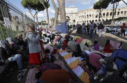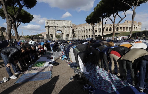 Una manifestazione di preghiera ha raccolto un migliaio di musulmani nel centro di Roma per reclamare il diritto ai luoghi di culto. Purtroppo la questione delle moschee abusive resta un problema da affrontare perché manca una normativa nazionale. (foto Ap)