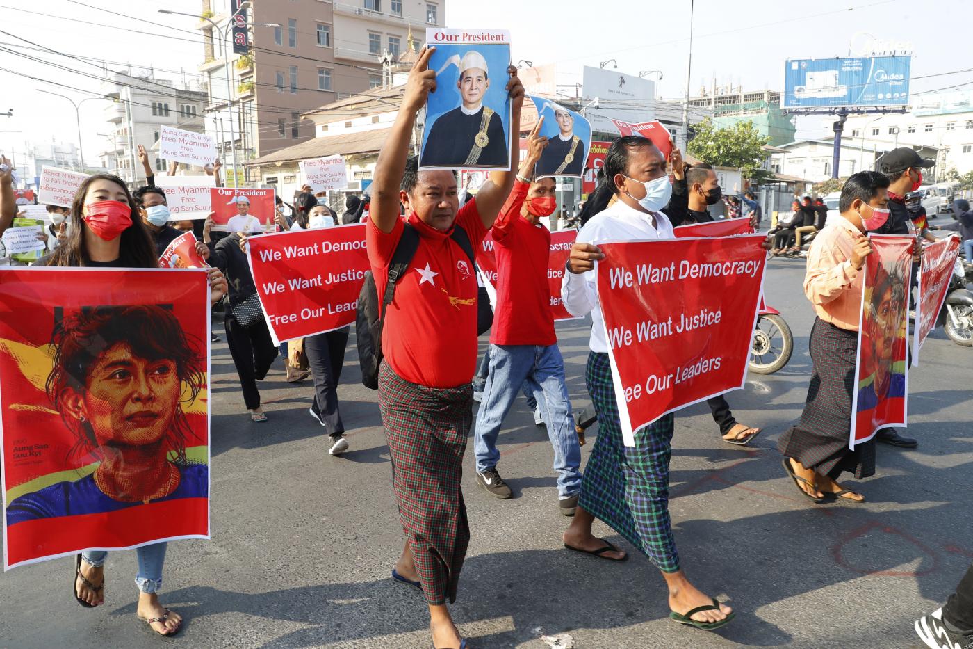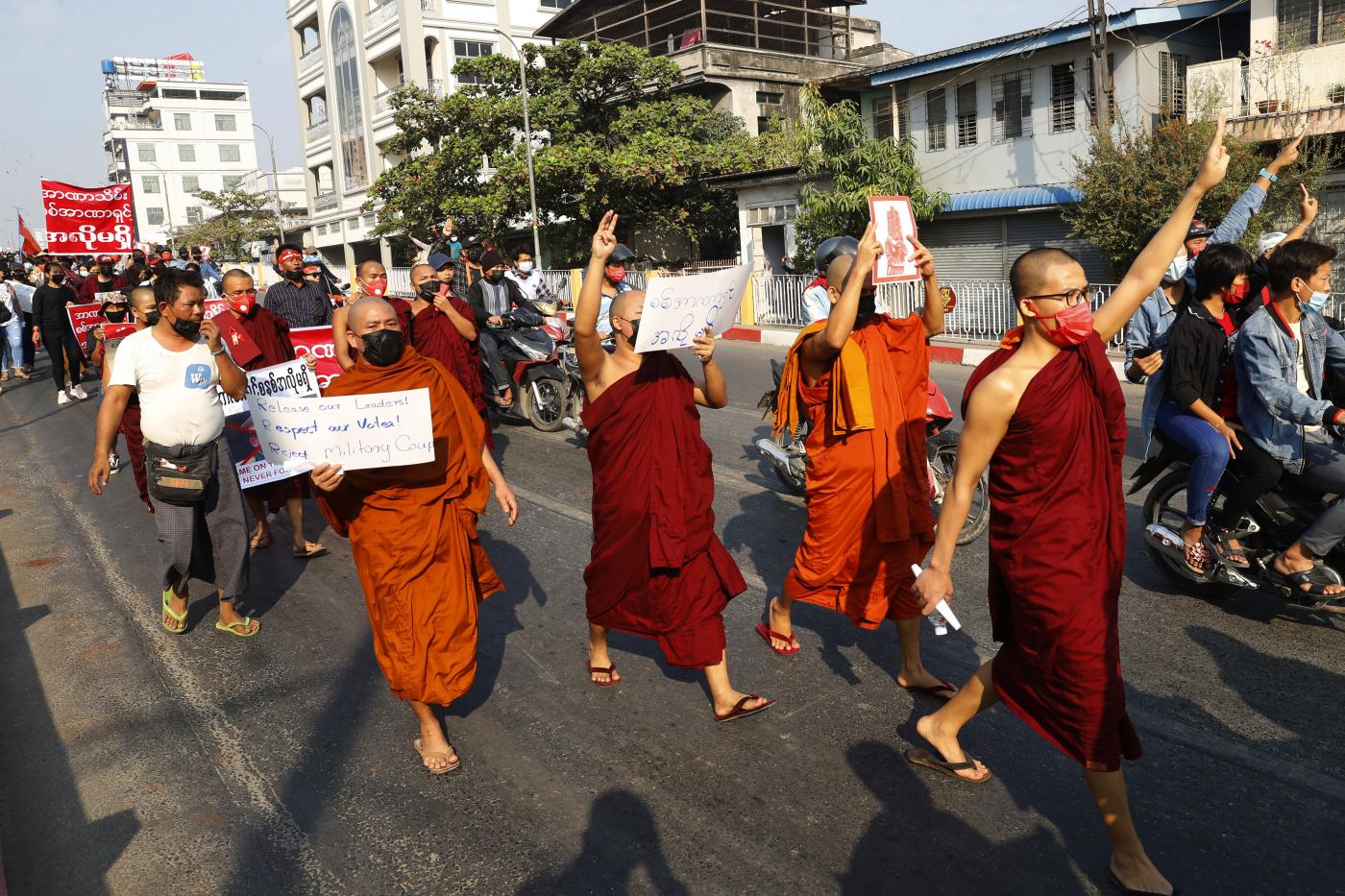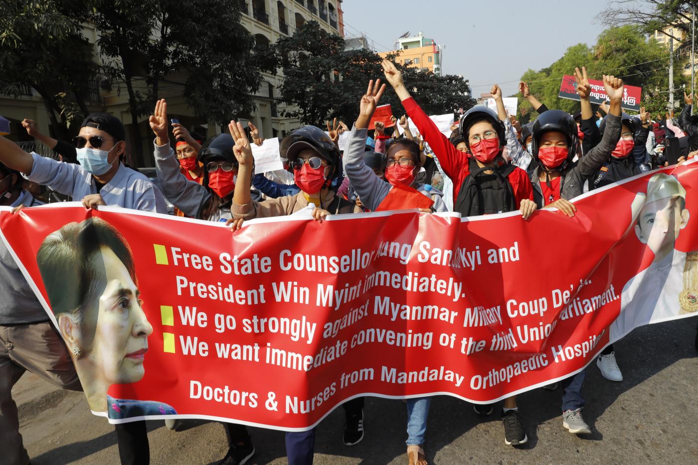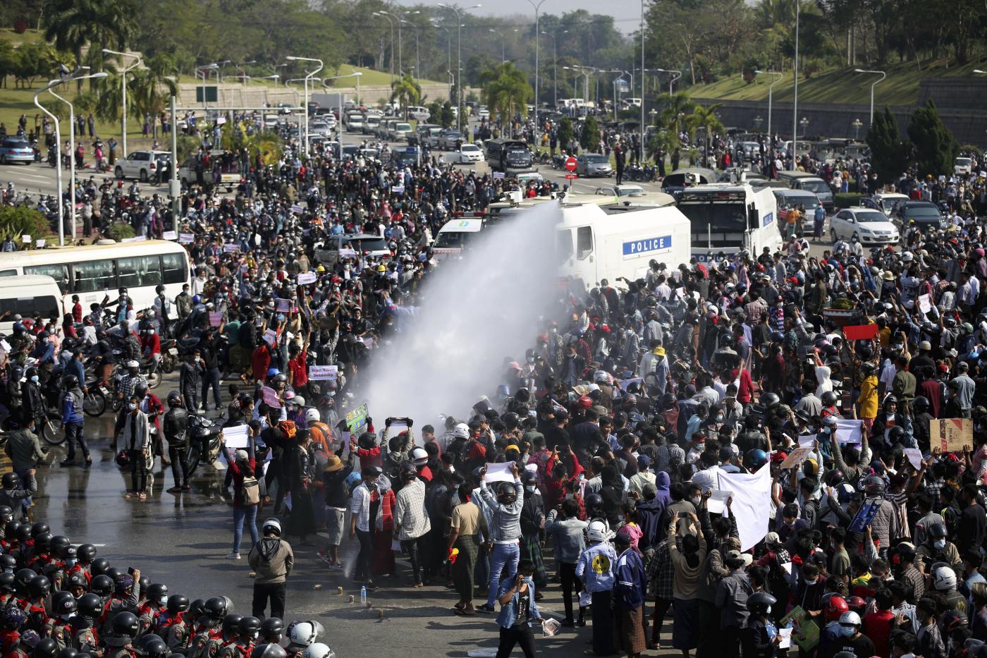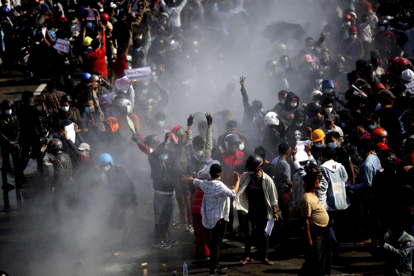 Per il terzo giorno consecutivo, migliaia di manifestanti sono scesi in pizza in Myanmar. Le proteste vanno avanti da quando il governo guidato da Aung San Suu Kyi, della Lega nazionale per la democrazia, è stato rovesciato da un colpo di stato militare. Nella capitale Naypyidaw la polizia ha usato cannoni ad acqua sui lavoratori impegnati in uno sciopero nazionale. La giunta militare birmana ha imposto una legge marziale che impone il coprifuoco, viete gli assembramenti con più di cinque persone e i discorsi in pubblico. Una decisione che in controtendenza con le parole di papa Francesco nell’angelus di domenica scorsa in cui ha chiesto un ritorno alla normalità per il Paese asiatico. (AP Photo)
