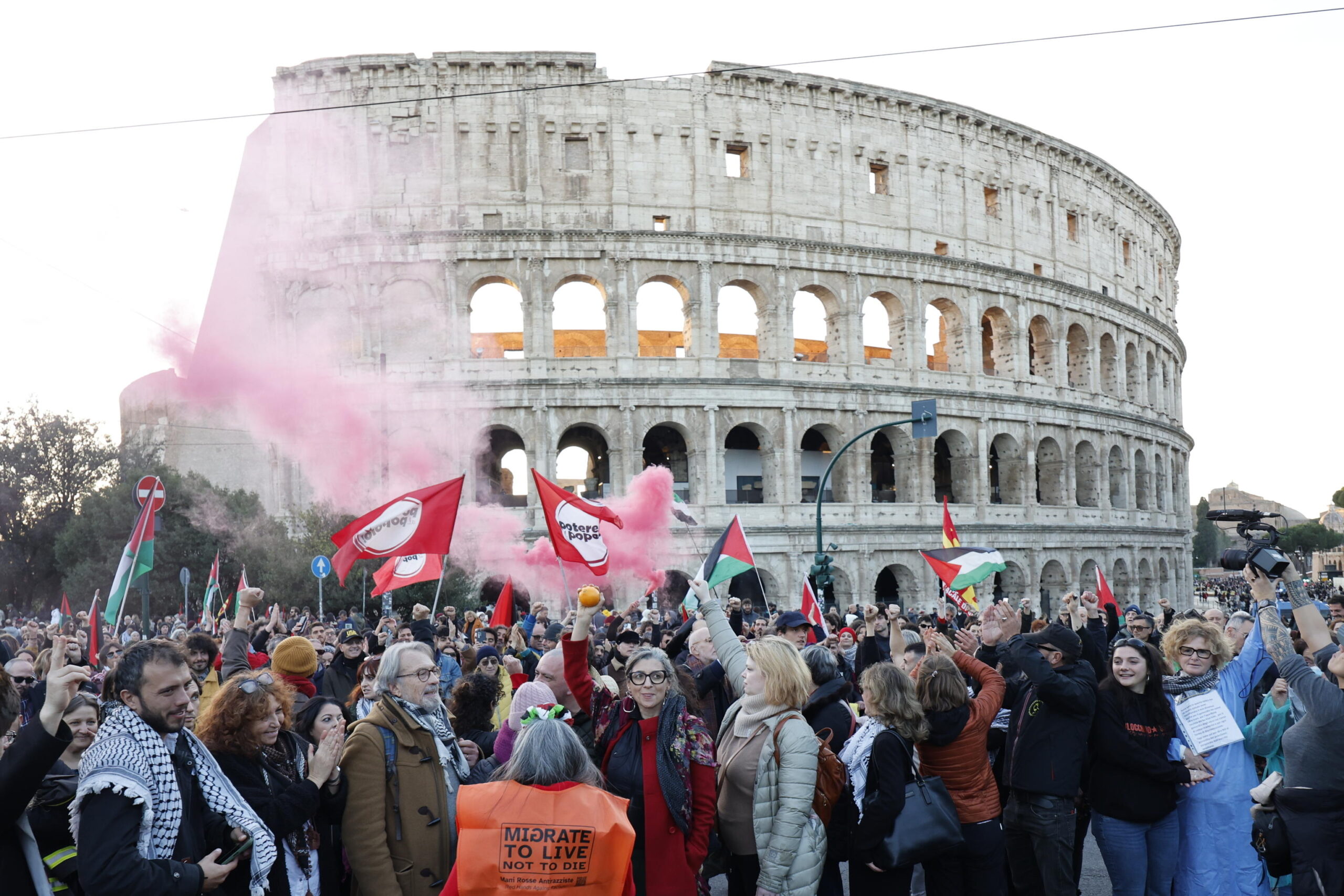 Le immagini dei cortei che hanno percorso il centro di Roma e Milano sabato 29 novembre rinfrancano l’animo e riaccendono la speranza che si possa ancora tenere viva l’attenzione sulla drammatica situazione in Palestina. L’irruzione di un gruppo di manifestanti nella redazione della Stampa a Torino, di cui una trentina sono stati già identificati, ha gettato un’ombra sull’impegno e la partecipazione attiva di un popolo nonviolento, giovani soprattutto, che chiede ancora pace e giustizia dato che il formale cessate il fuoco non è mai stato tale. Si sono levati cartelli e striscioni anche per la liberazione di Mohamed Shahin, imam della moschea di San Salvario, rinchiuso nel Centro di permanenza per il rimpatrio di Caltanissetta, a causa delle frasi pronunciate durante la manifestazione del 9 ottobre, secondo cui la violenza di Hamas è una reazione ad anni di occupazione di Israele. Una denuncia nei suoi confronti che era stata archiviata dai pm in assenza di reato. Oltre all’imam anche Ahmad Salem, un ragazzo palestinese di 24 anni è incarcerato ingiustamente a Rossano Calabro in alta sicurezza da 6 mesi con le accuse di istigazione a delinquere e autoaddestramento con finalità di terrorismo per un video in cui parla del genocidio a Gaza e invita alla mobilitazione nelle piazze del Libano.
