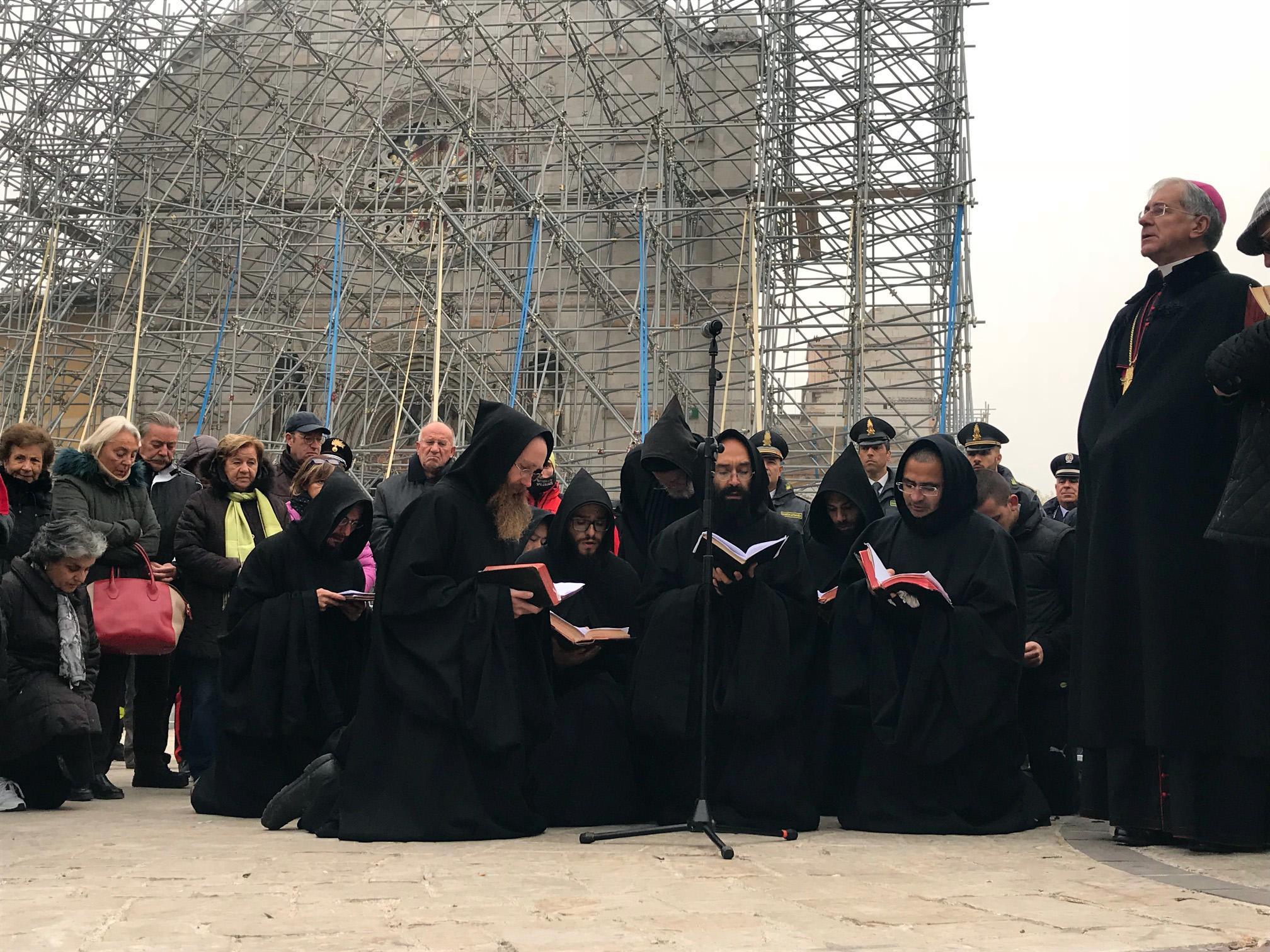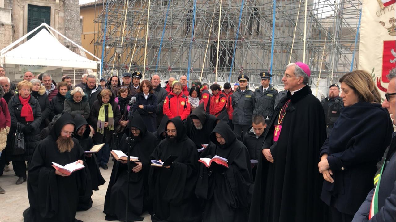Ore 7.41 del 30 ottobre 2016 – ore 7.41 del 30 ottobre 2017: un anno dopo la forte scossa di magnitudo 6.5 che, il 30 ottobre 2016, sconvolse il capoluogo della Valnerina ed altri centri di questa zona dell’Umbria, gli abitanti di Norcia e dei comuni vicini, insieme ai rappresentanti delle Istituzioni regionali e locali, alle autorità civili e militari, si sono ritrovati in piazza san Benedetto per pregare e ricordare.