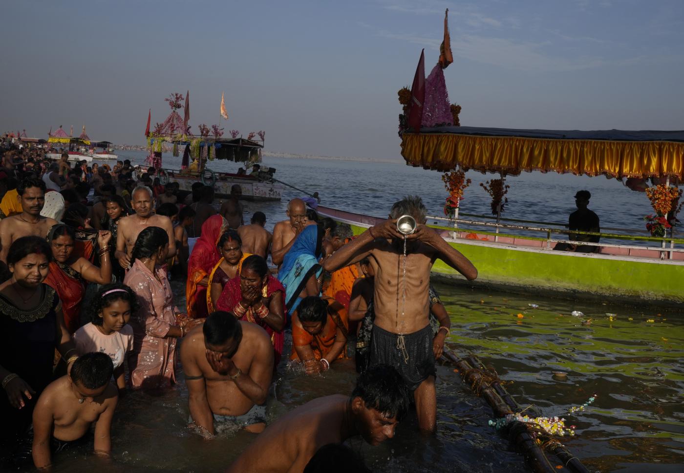Nelle case pulite e decorate la donna più giovane della famiglia guida il cerimoniale applicando un tilak (tipica decorazione sulla fronte) rosso a tutti gli altri membri della famiglia. Si osserva l’astinenza da determinati alimenti tra cui carne, uova, cipolle, aglio, alcune spezie e prodotti a base di grano. Sono consentiti anche yogurt, latte, tè, caffè e acqua insieme a frutta e verdura. (AP Photo/Bikas Das; Associated Press/LaPresse)