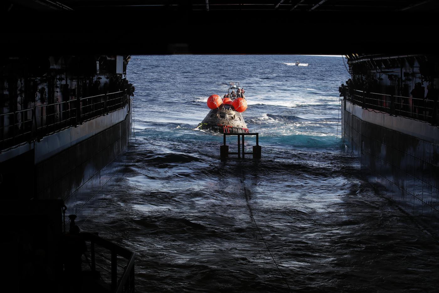 Orion è tornata sulla Terra dopo aver sorvolato la Luna da “vicino”, con due passaggi ravvicinati a soli 128 chilometri di distanza dalla sua superficie. Termina così la missione Artemis 1 di esplorazione lunare da parte della capsula della Nasa; lo splashdown (ammaraggio) è riuscito regolarmente e le squadre di recupero, composte da membri della Marina statunitense e da ingegneri della Nasa, si sono posizionate nell’area dell’isola di Guadalupe per gestire l’arrivo della capsula per ora occupata da manichini, ma destinata a trasportare un equipaggio.