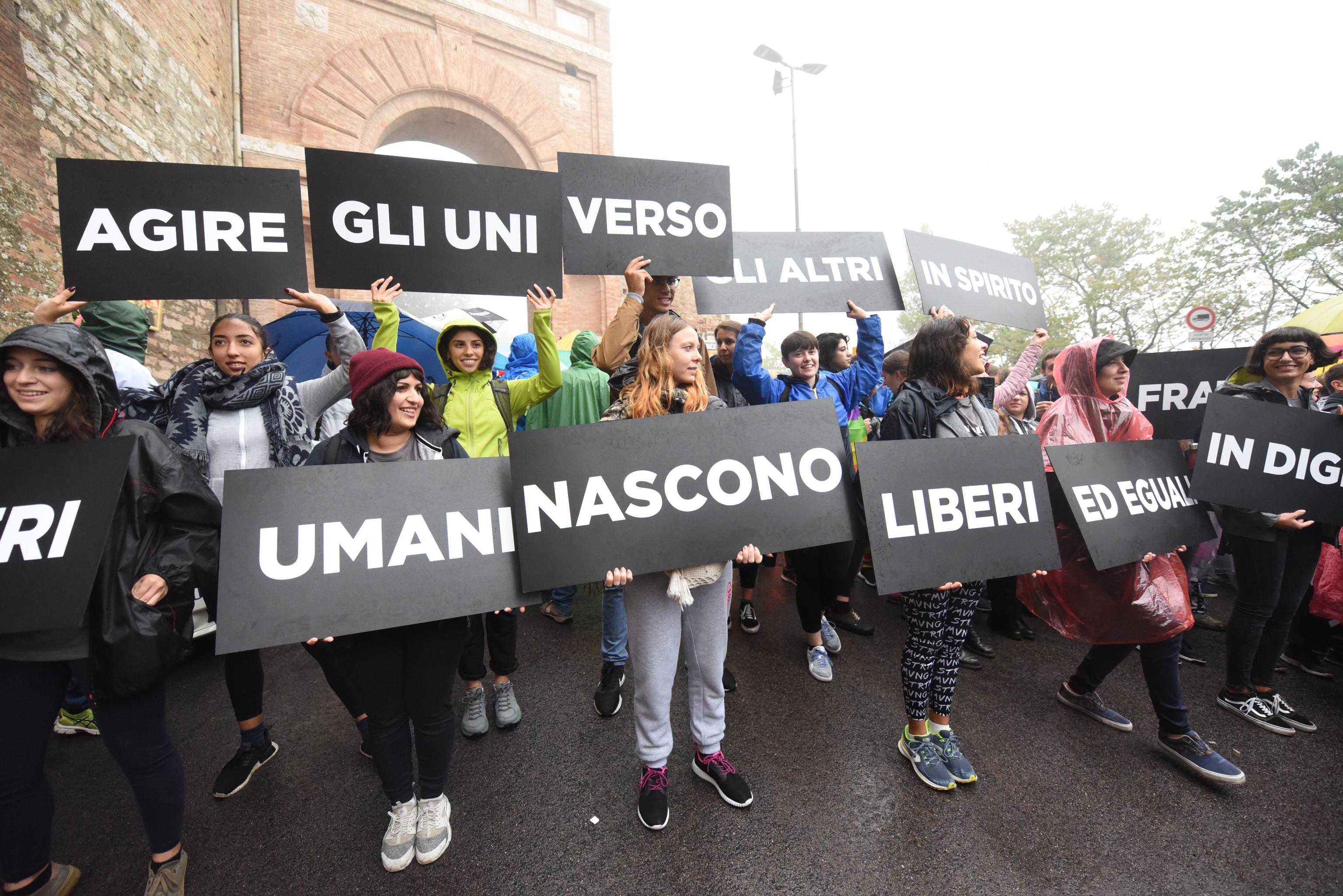 Circa 100 mila persone sono state coinvolte domenica 7 ottobre 2018 nella marcia per la pace e la fraternità partita da Perugia per arrivare, dopo 24 chilometri, sulla rocca di Assisi.