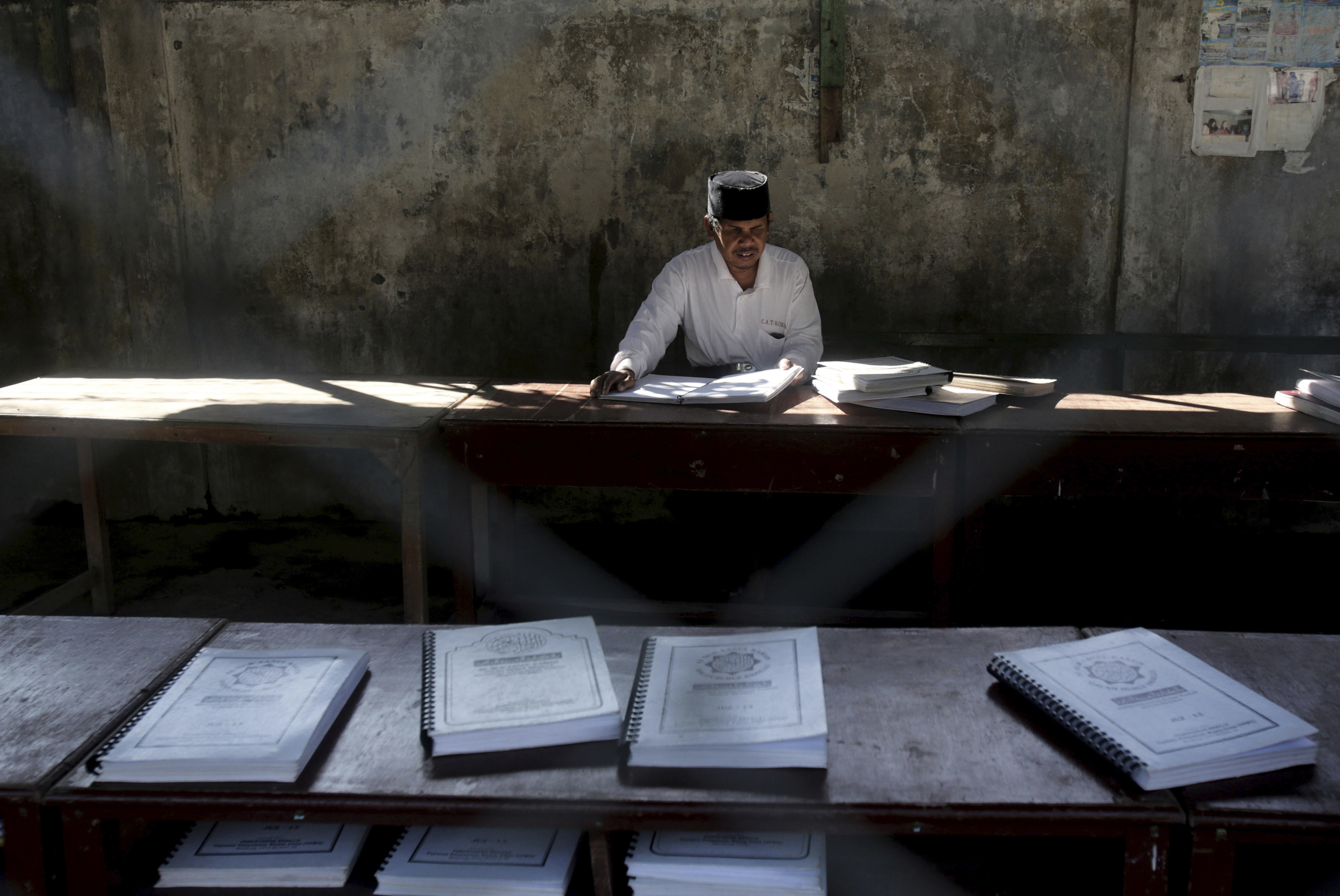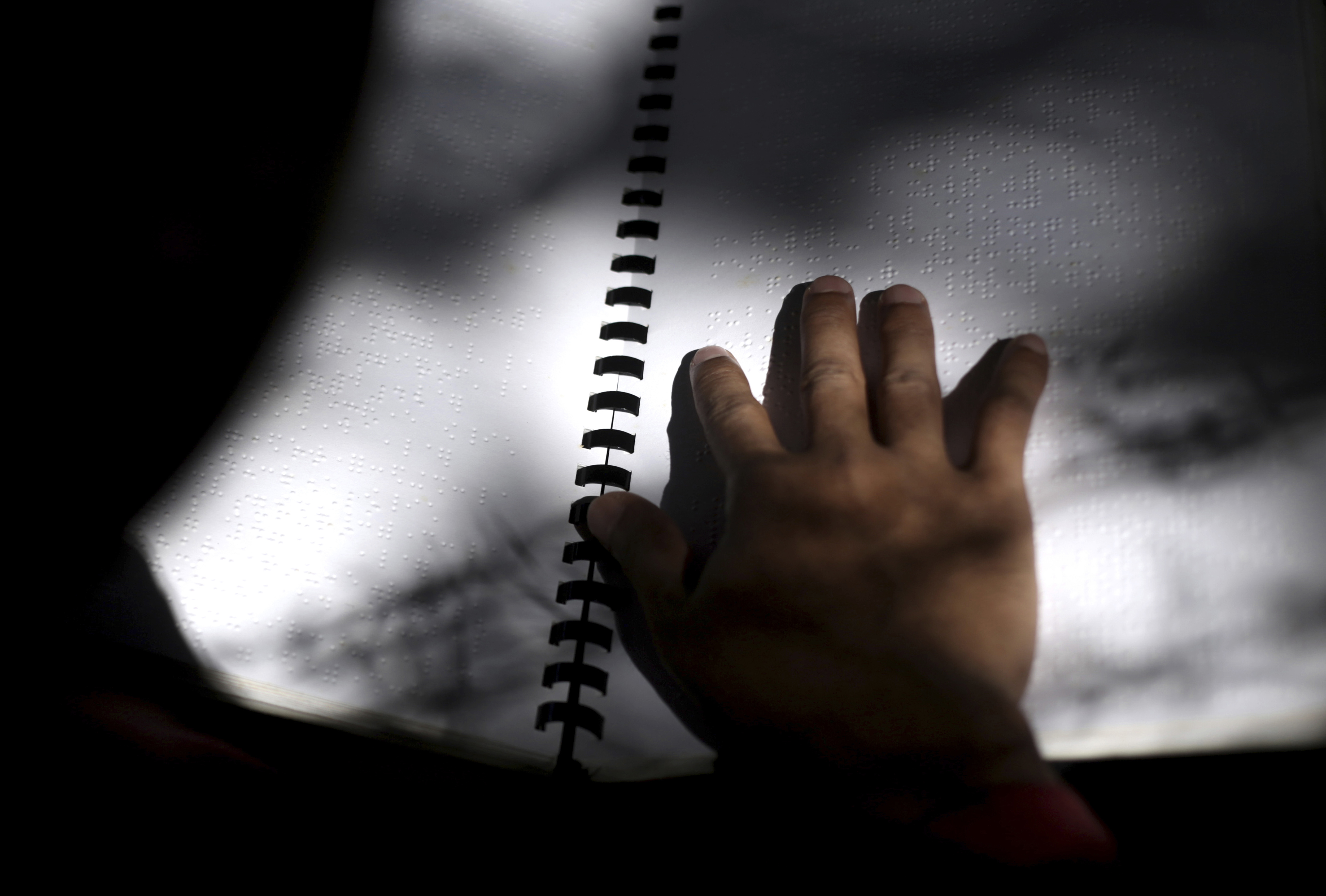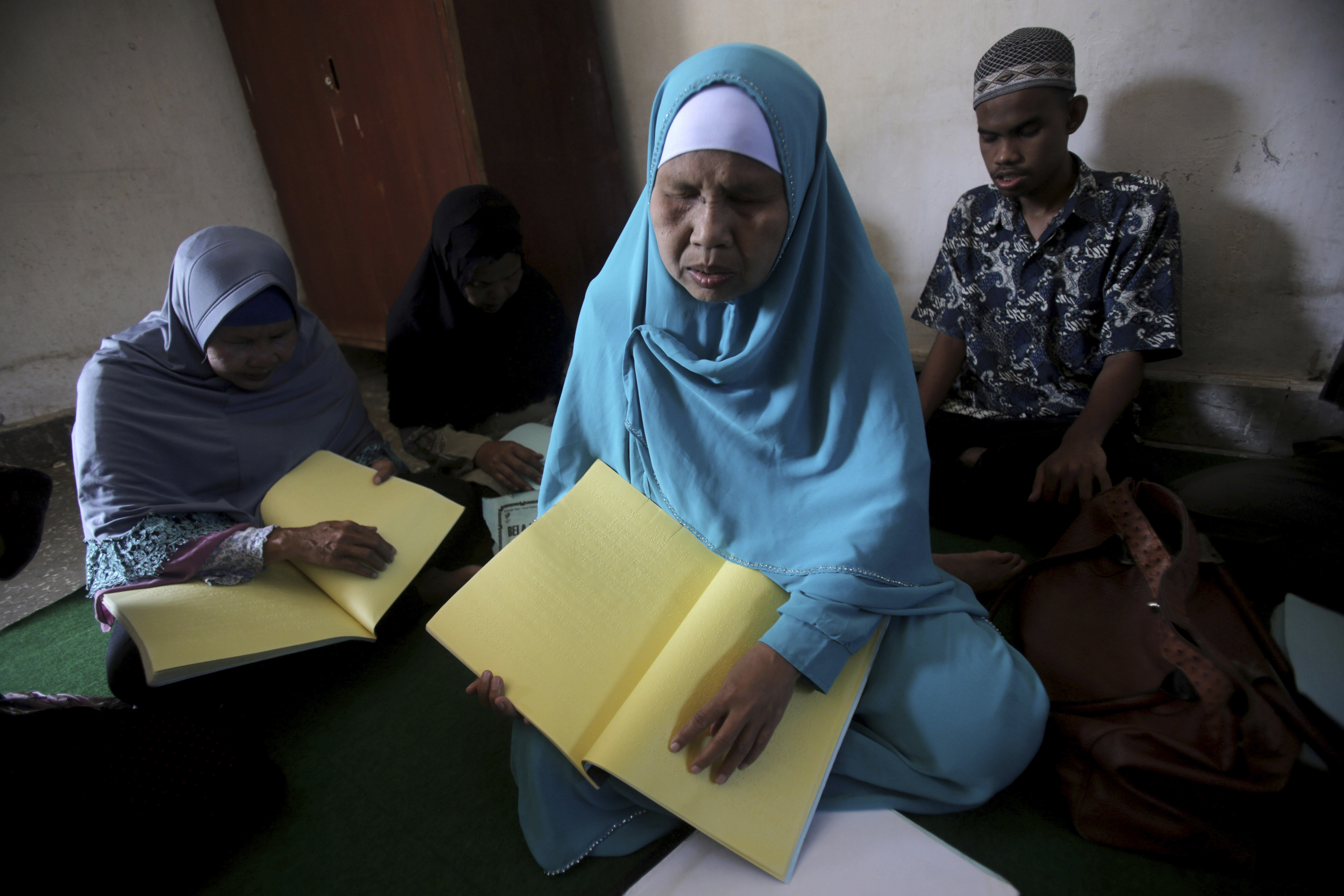 Nelle prime tre foto, un uomo e una donna ciechi leggono il Corano in braille: le immagini sono state scattate in Indonesia, nell’isola di Sumatra, all’interno di una scuola coranica.
