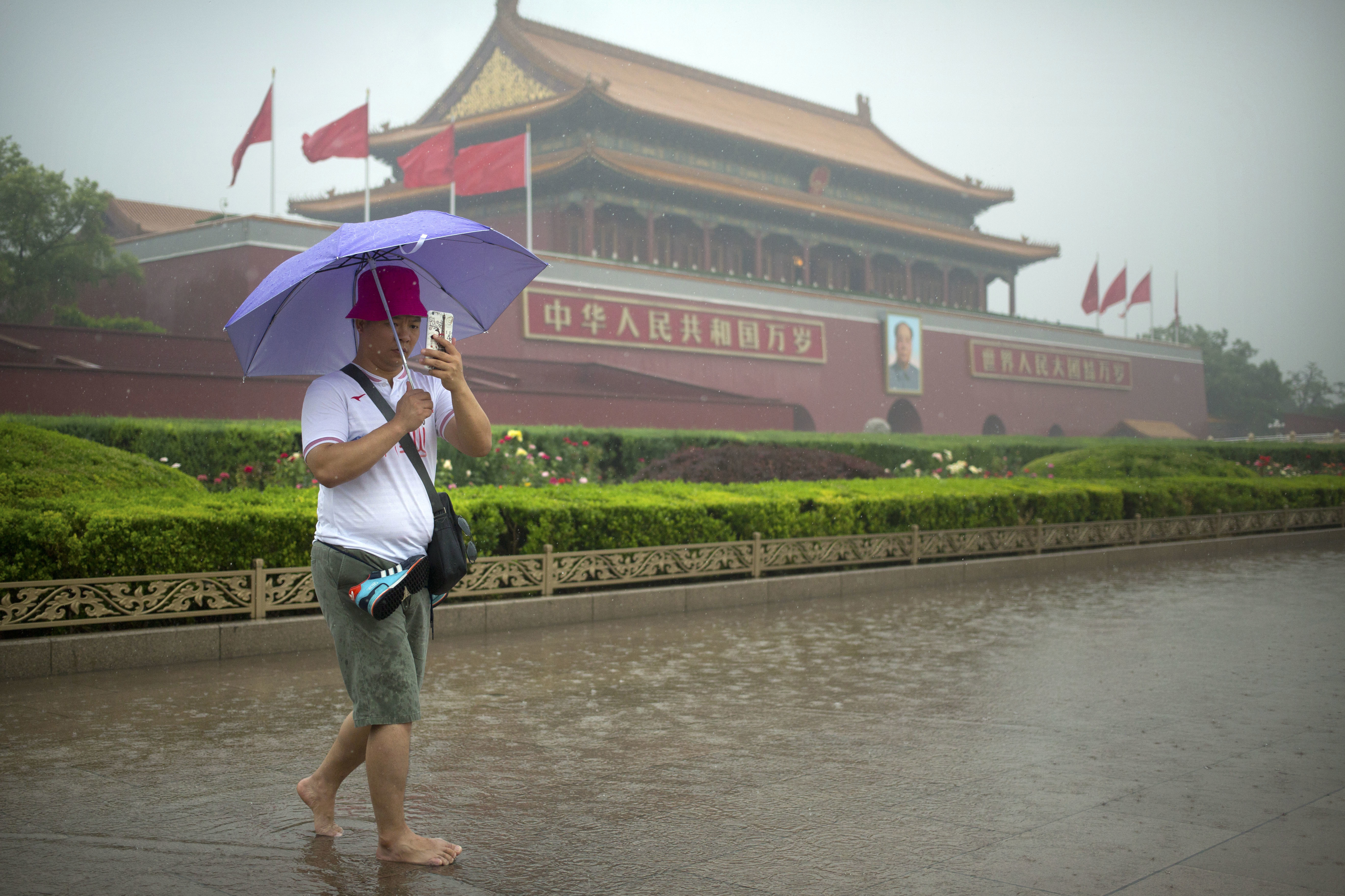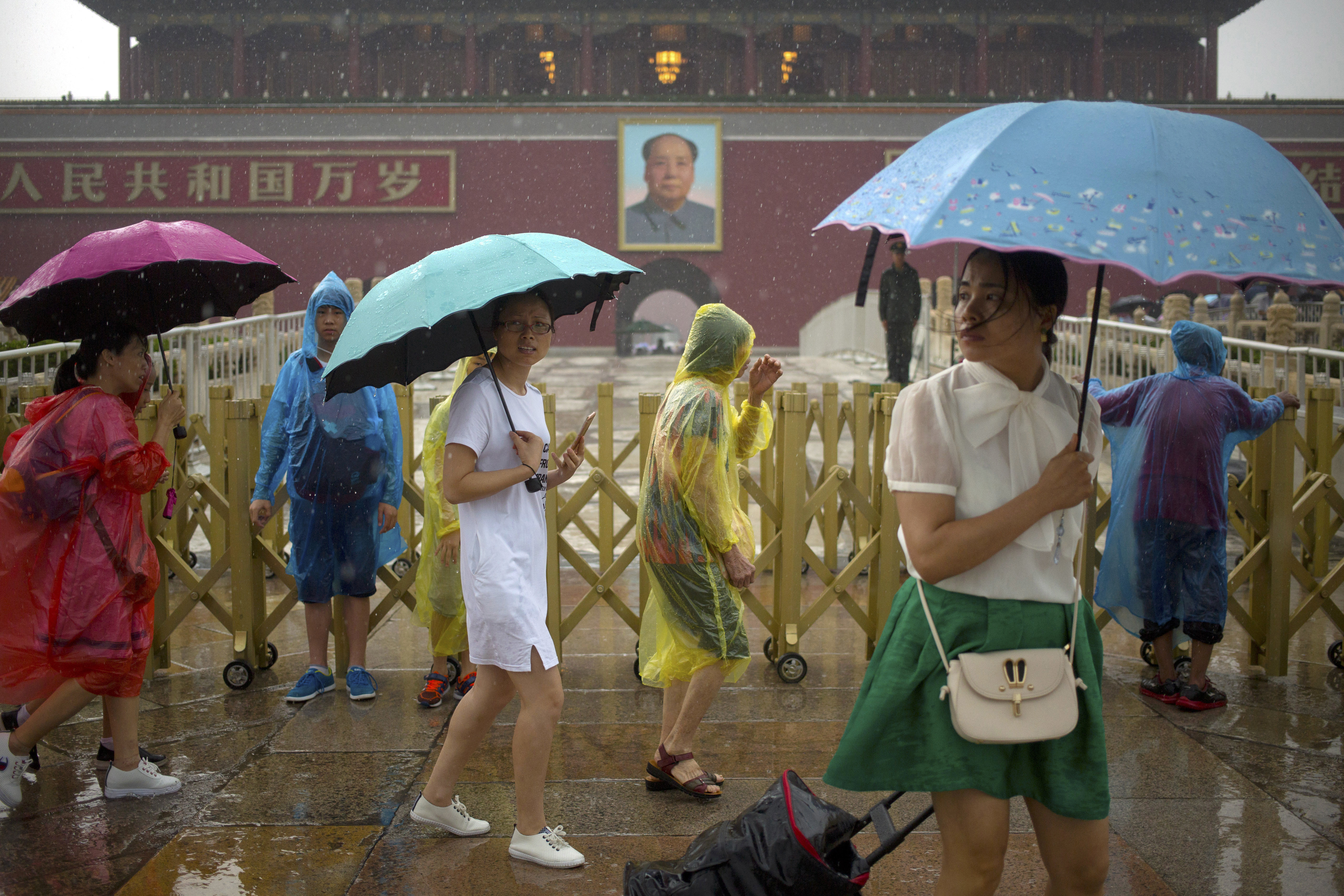 La capitale cinese riceve buona parte delle piogge nella stagione estiva: ed è così che la città – tristemente famosa per lo smog, e quindi associata in primo luogo al grigio – si riempie di ombrelli colorati, spesso venduti anche agli angoli delle strade. In questa gallery vediamo alcuni scatti fatti nella celebre piazza Tienanmen e nei dintorni.