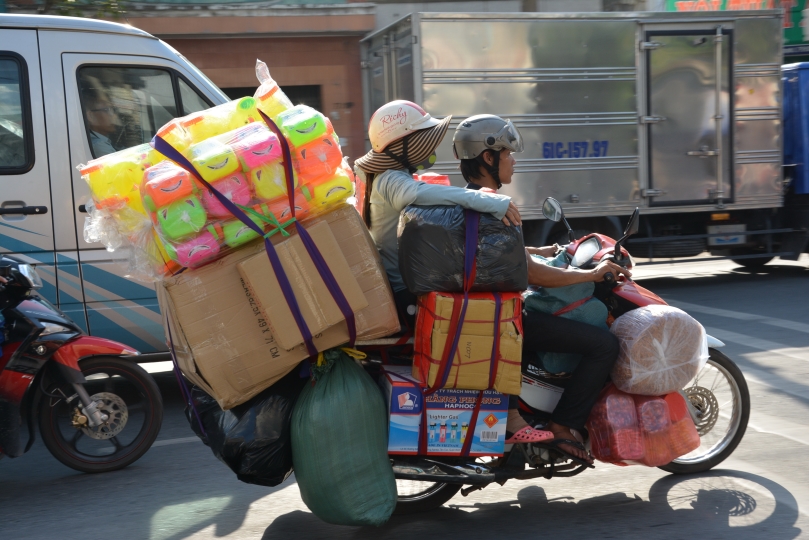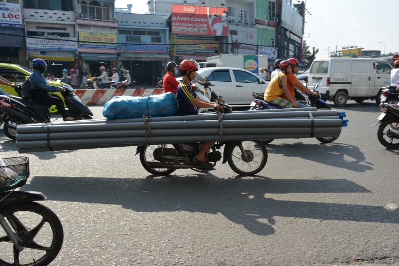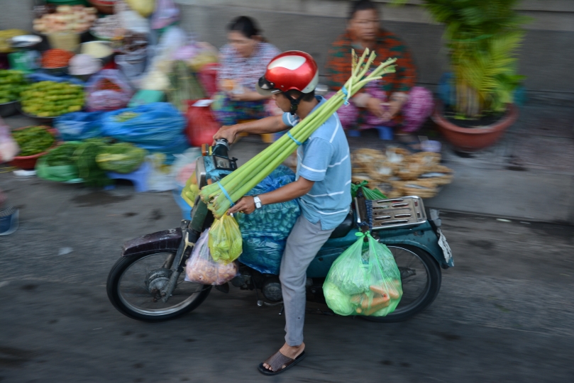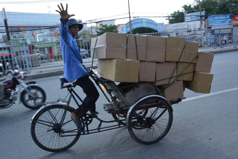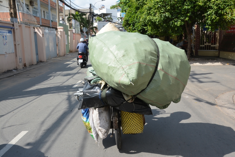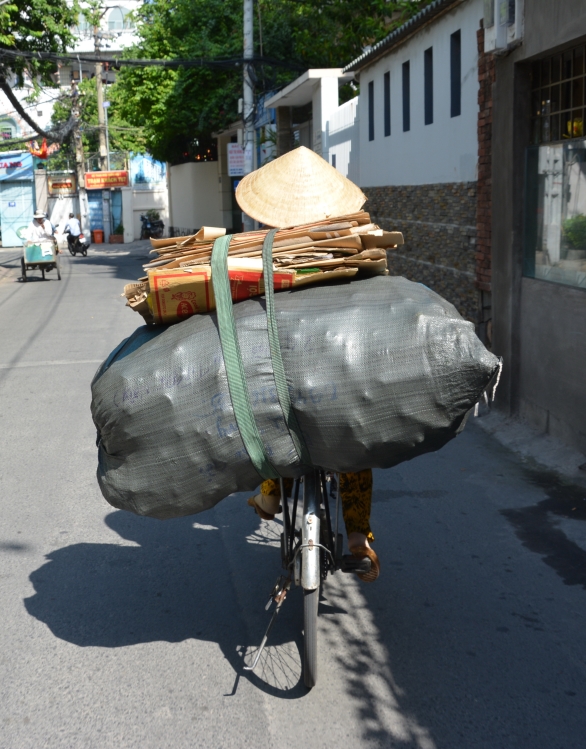 Vedendoli portare questi pesi in mezzo al traffico, dietro le bicilclette e le moto, ho meditato sulla vita: chi non ha pesi, anche enormi, da portare per poter vivere? Chi non vorrebbe fermarsi e smetterla di faticare? Penso ognuno di noi…