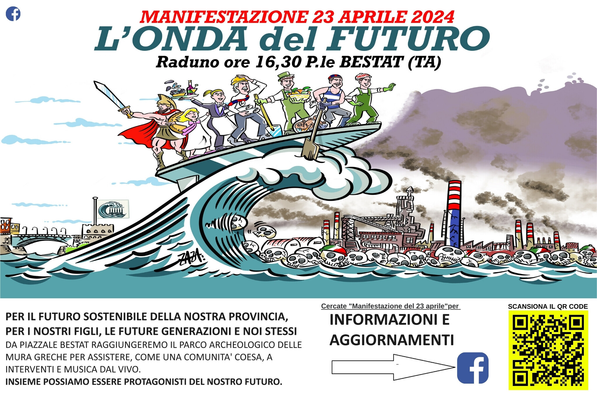 Alla vigilia della gesta della Liberazione, il 23 aprile è stata promossa la marcia intitolata “L’Onda del Futuro a Taranto” promossa da 50 associazioni di Taranto per chiedere «una seria riconversione economica dell’intero territorio che parta dallo smantellamento degli impianti dell’ex Ilva e dalla riqualificazione di tutti i lavoratori, che devono diventare i veri protagonisti della decontaminazione e della bonifica dell’intera area industriale».  Secondo le associazioni «come in una comunità coesa, ognuno può essere quella goccia che formerà un’incredibile onda per il futuro sostenibile nostro, dei nostri figli e delle prossime generazioni».
