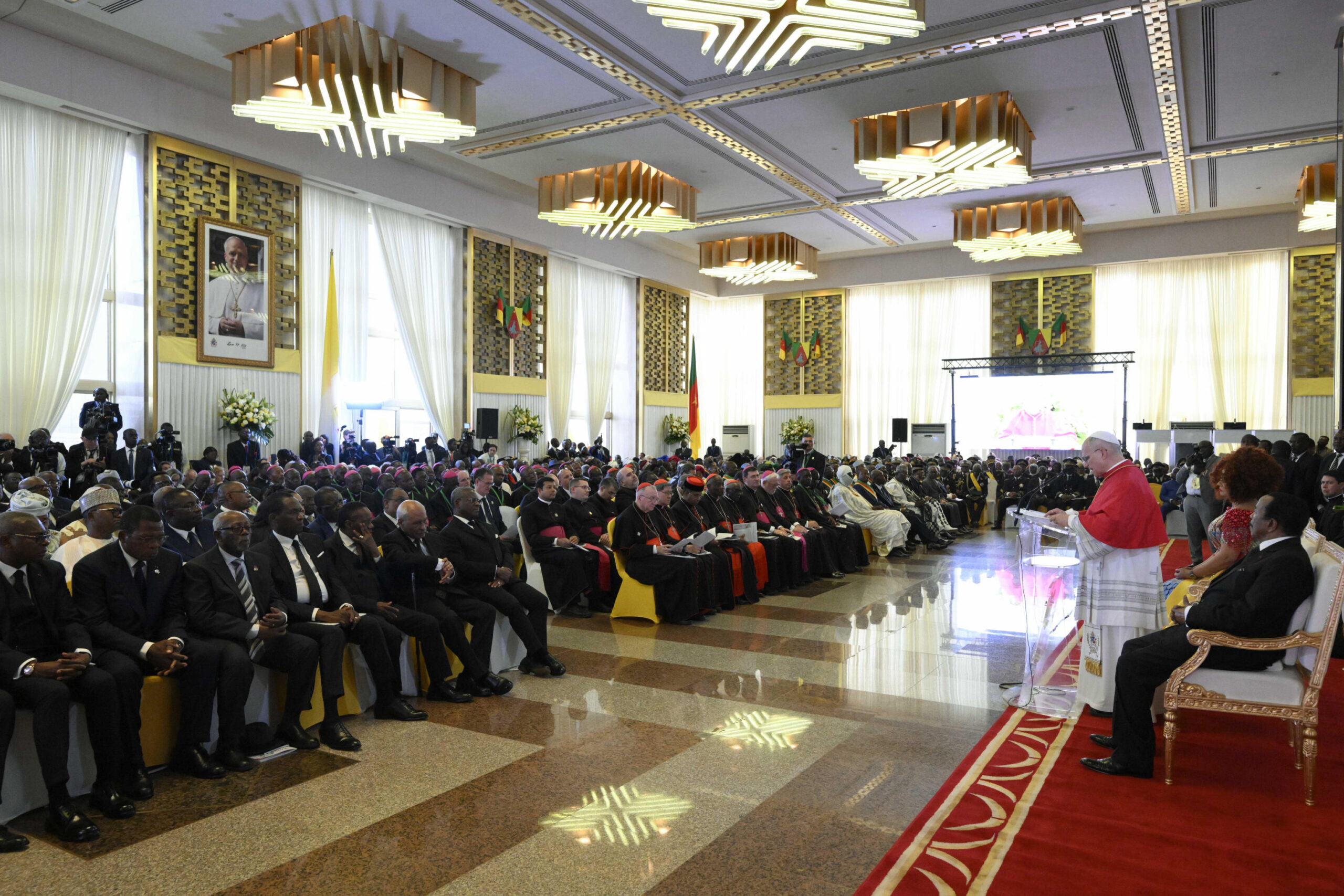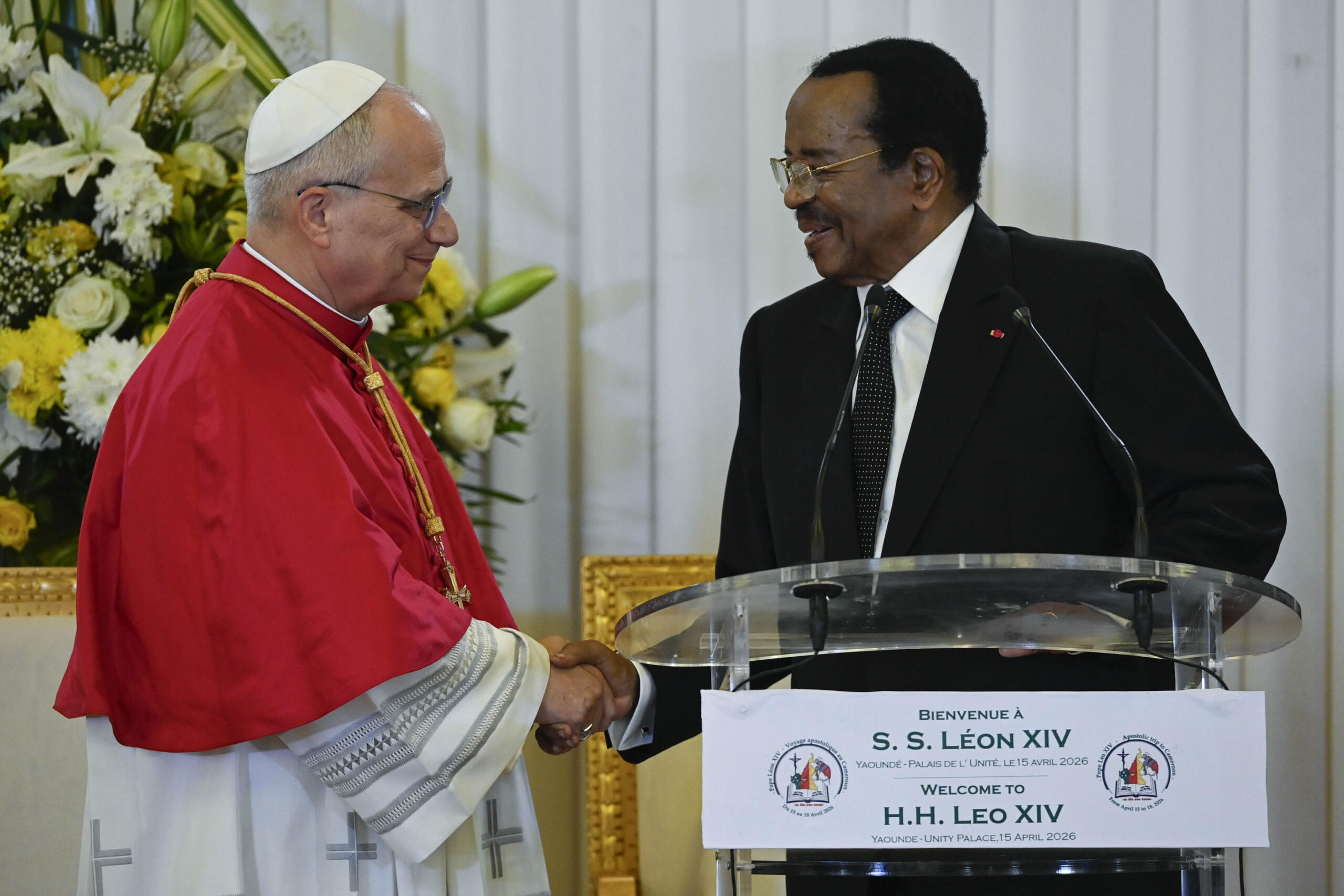 Continua il viaggio apostolico in Africa di papa Leone XIV, che dopo l’Algeria è in visita in Camerun. Il 15 aprile – giorno a cui si riferiscono queste immagini – ha incontrato alcuni rappresentanti della autorità, dei funzionari pubblici, della società civile e del corpo diplomatico; e visitato un orfanotrofio. Giovedì 16 ha invece avuto un incontro per la pace con la comunità di Bamenda e celebrato la messa. Il tema della pace ha dunque continuato ad essere centrale nelle parole e nelle azioni del pontefice.