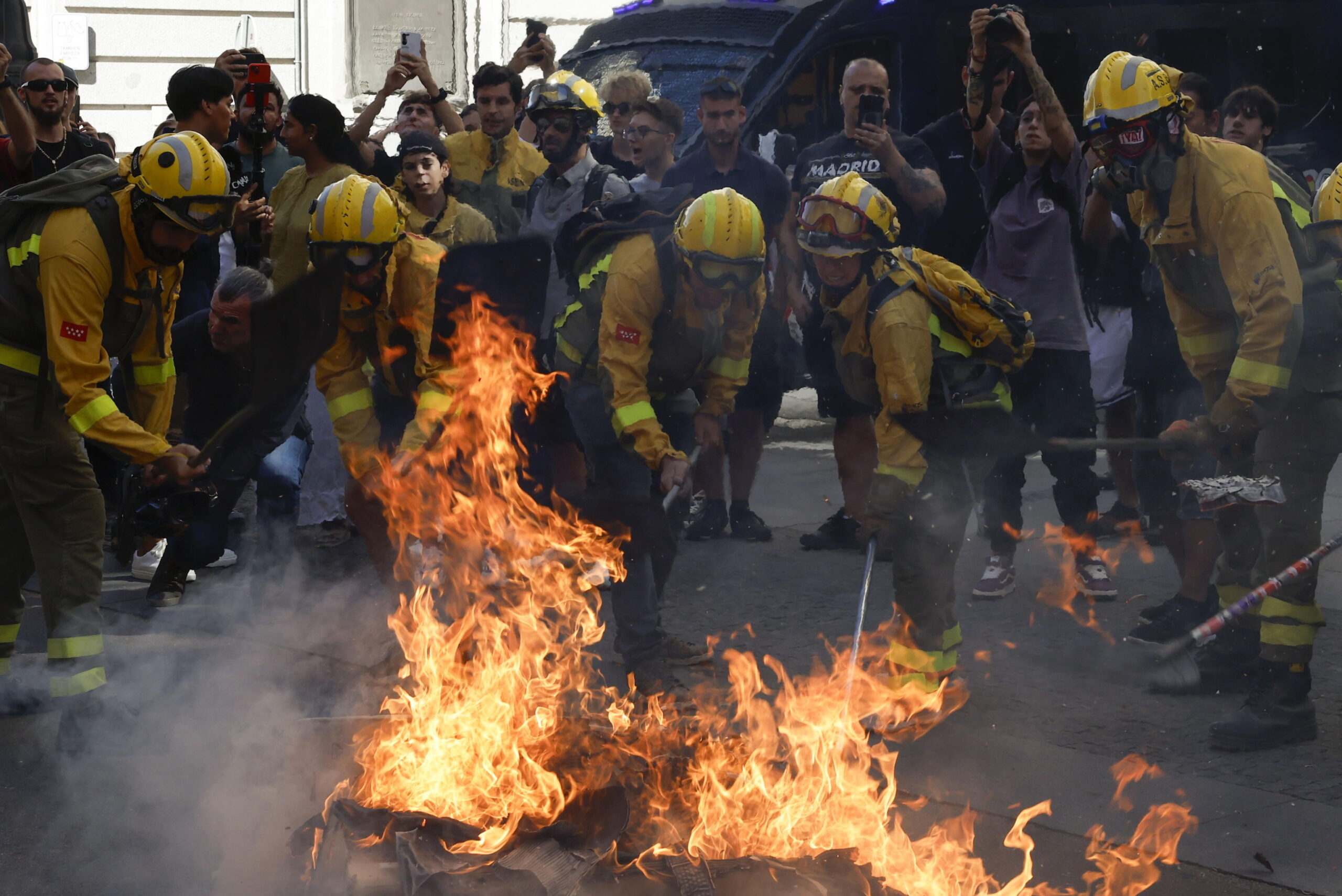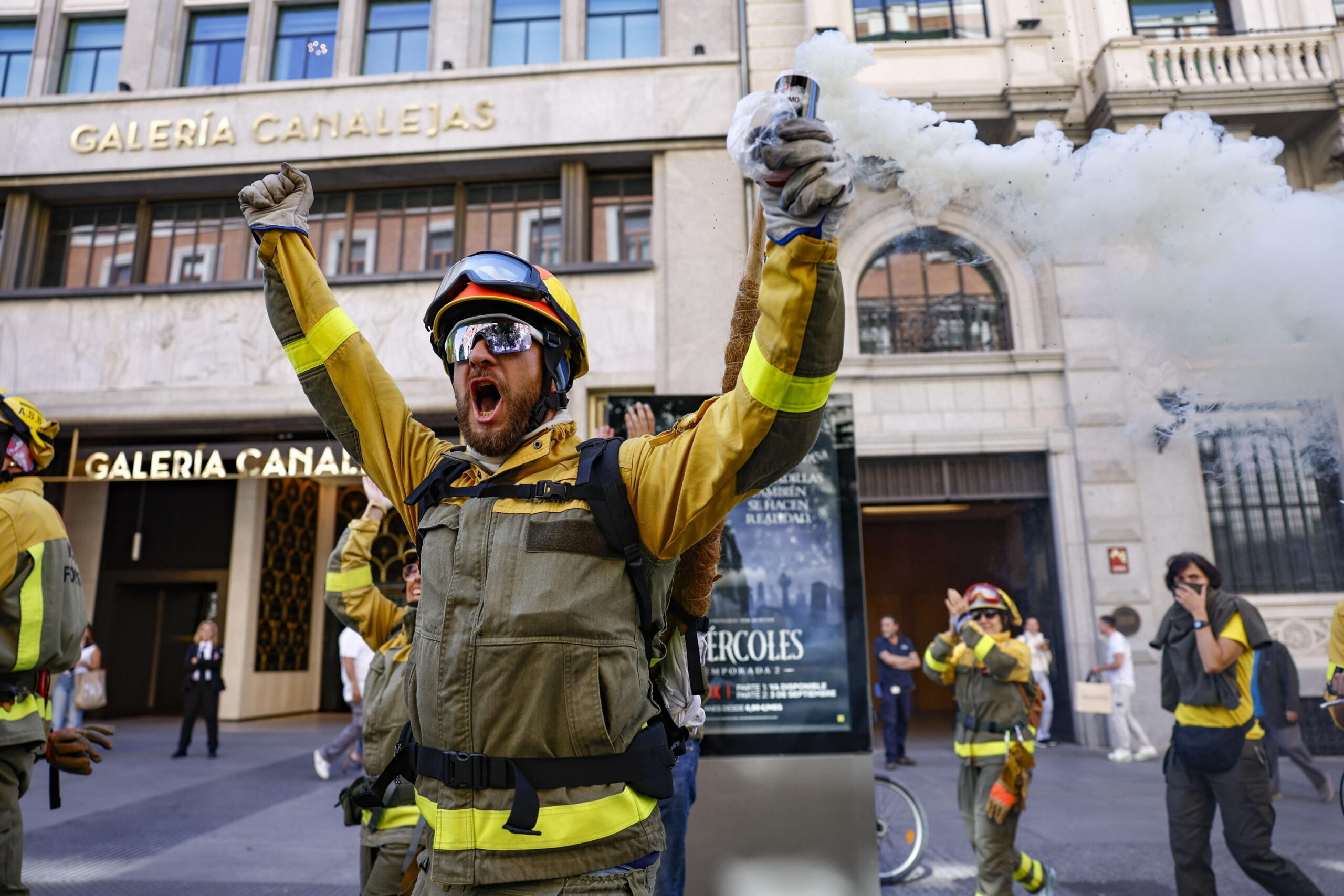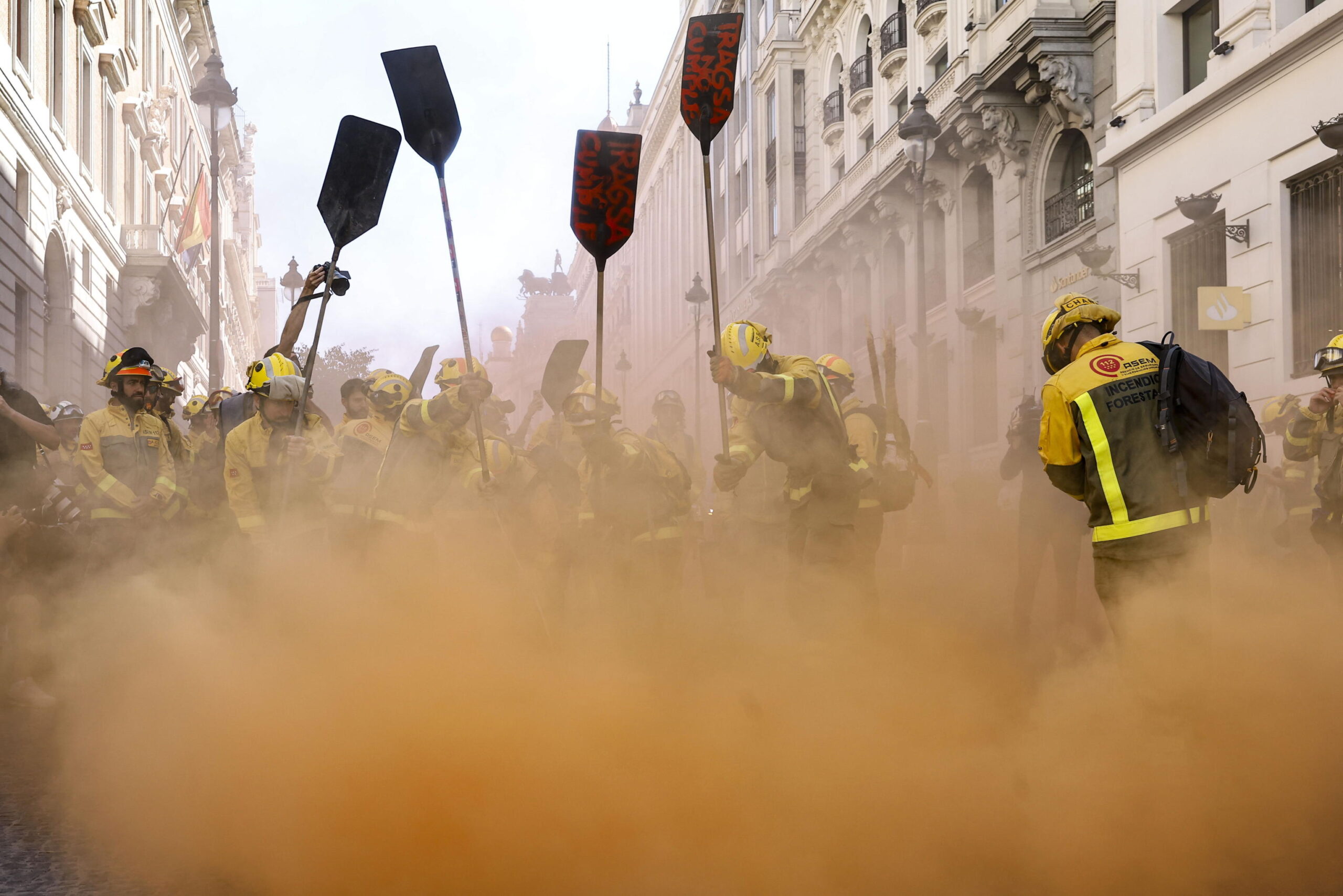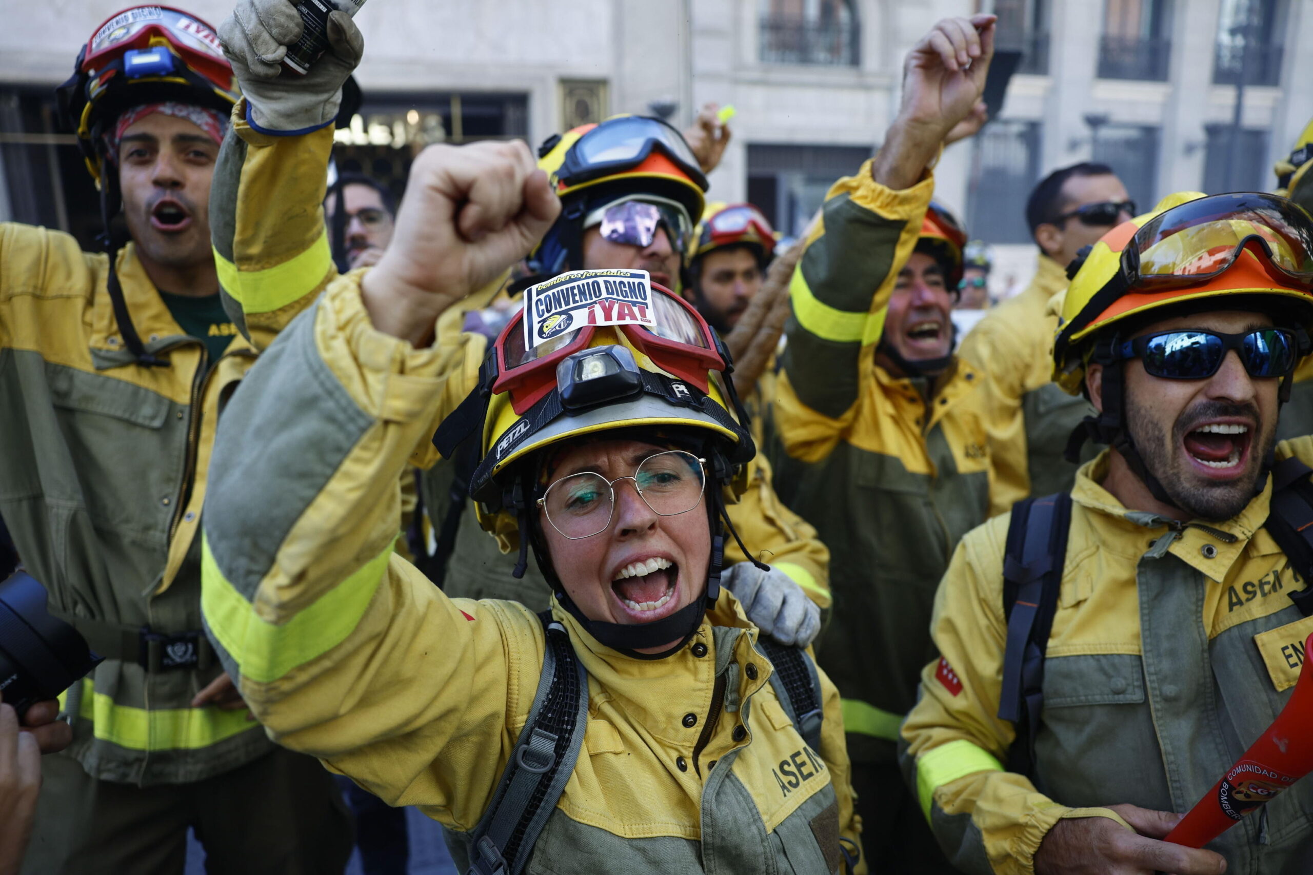 I vigili del fuoco forestali della regione di Madrid si sono manifestati oggi, mercoledì 3 settembre, davanti al Ministero delle finanze (Hacienda). Fra le richieste: un aumento salariale adeguato, la stabilità della forza lavoro, il riconoscimento dei pericoli del loro lavoro e la negoziazione di un nuovo accordo.
