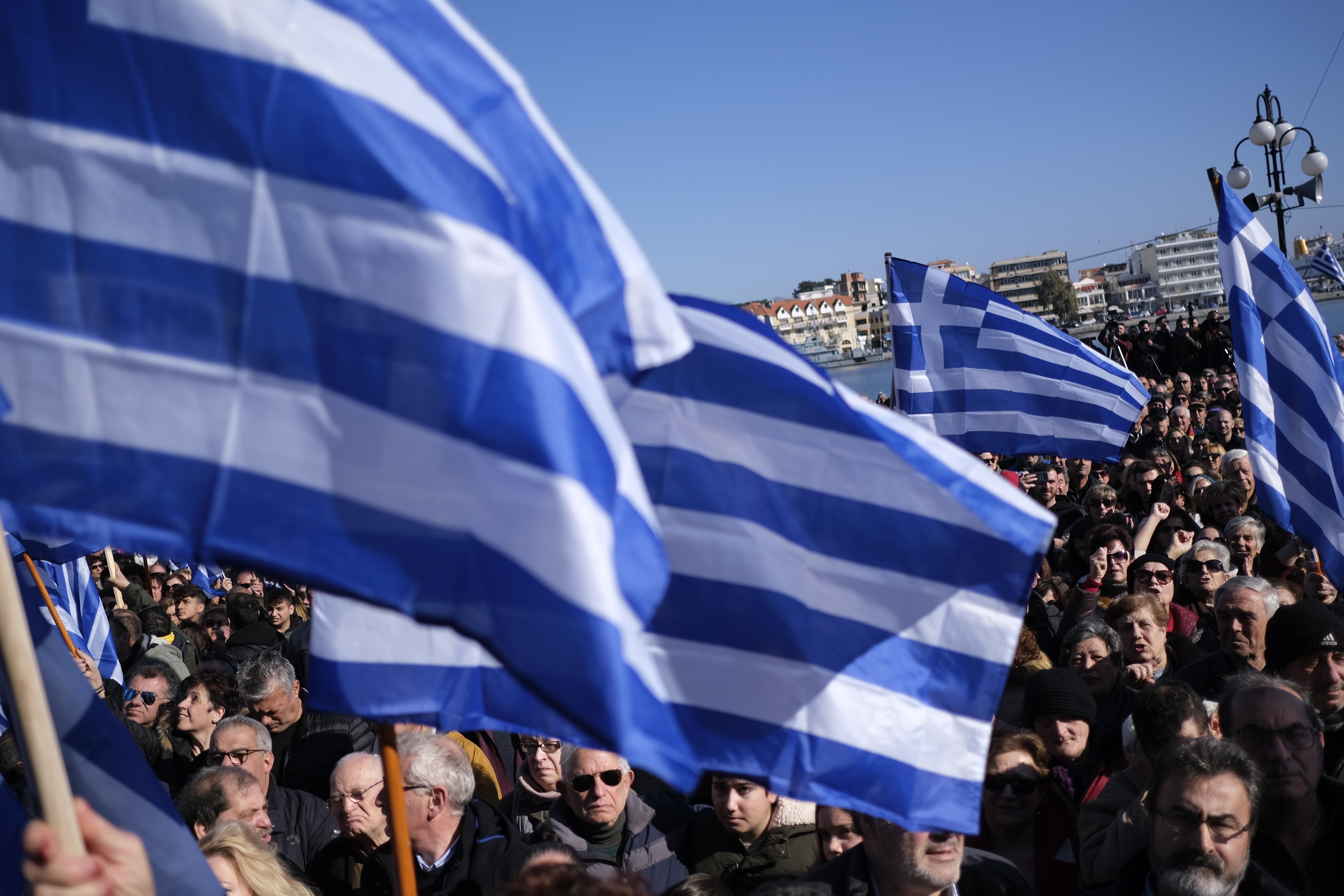 Manifestazioni e proteste nel Comune di Mitilene durante un raduno sull’isola di Lesbo, nel nord-est dell’Egeo, in Grecia. I residenti locali e gli imprenditori hanno organizzato una giornata di protesta sulle isole greche più duramente colpite dall’emigrazione, chiedendo al governo greco di alleviare il grave sovraffollamento dei campi profughi in condizioni sempre più precarie. Si è trattato di uno sciopero generale con interruzione di servizi pubblici nelle isole greche di Lesbo, Samo e Chios. «Nel più grande campo di Moria sull’isola di Lesbo – scrive l’Ansa – ci sono più di 19.000 richiedenti asilo in un campo con una capacità di 2.840 persone».