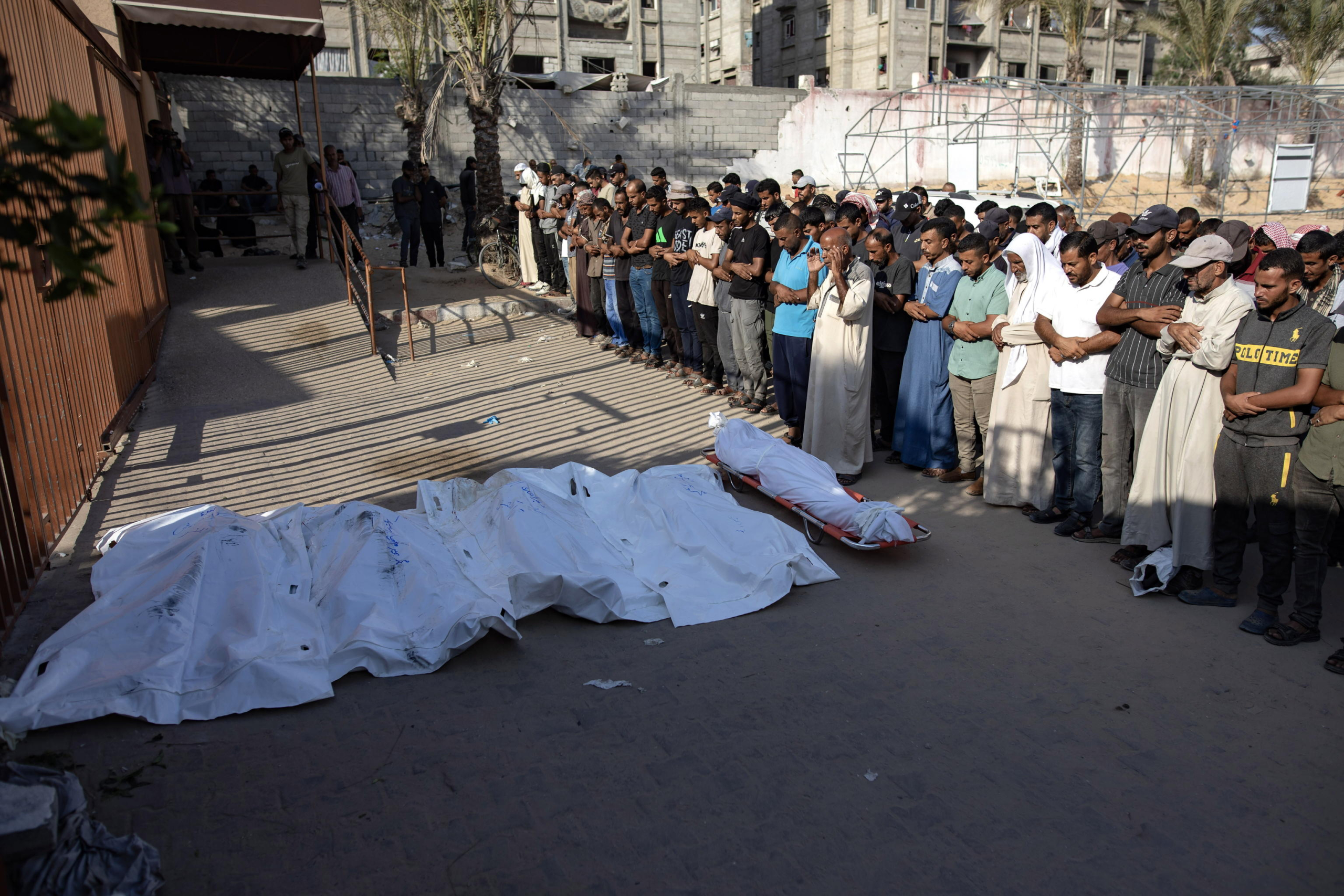 «Almeno 93 persone sono state uccise nell’attacco alla scuola Al-Taba’een nella zona di Daraj Tuffah a Gaza, ha detto il 10 agosto il direttore dell’ospedale Al-Ahli di Gaza City. Secondo il Ministero della Sanità palestinese e le Forze di Difesa Israeliane (IDF), più di 39.700 palestinesi e oltre 1.400 israeliani sono stati uccisi da quando i militanti di Hamas hanno lanciato un attacco contro Israele dalla Striscia di Gaza il 7 ottobre 2023 e dalle operazioni israeliane in corso a Gaza e in Cisgiordania». EPA/ALAA BADARNEH