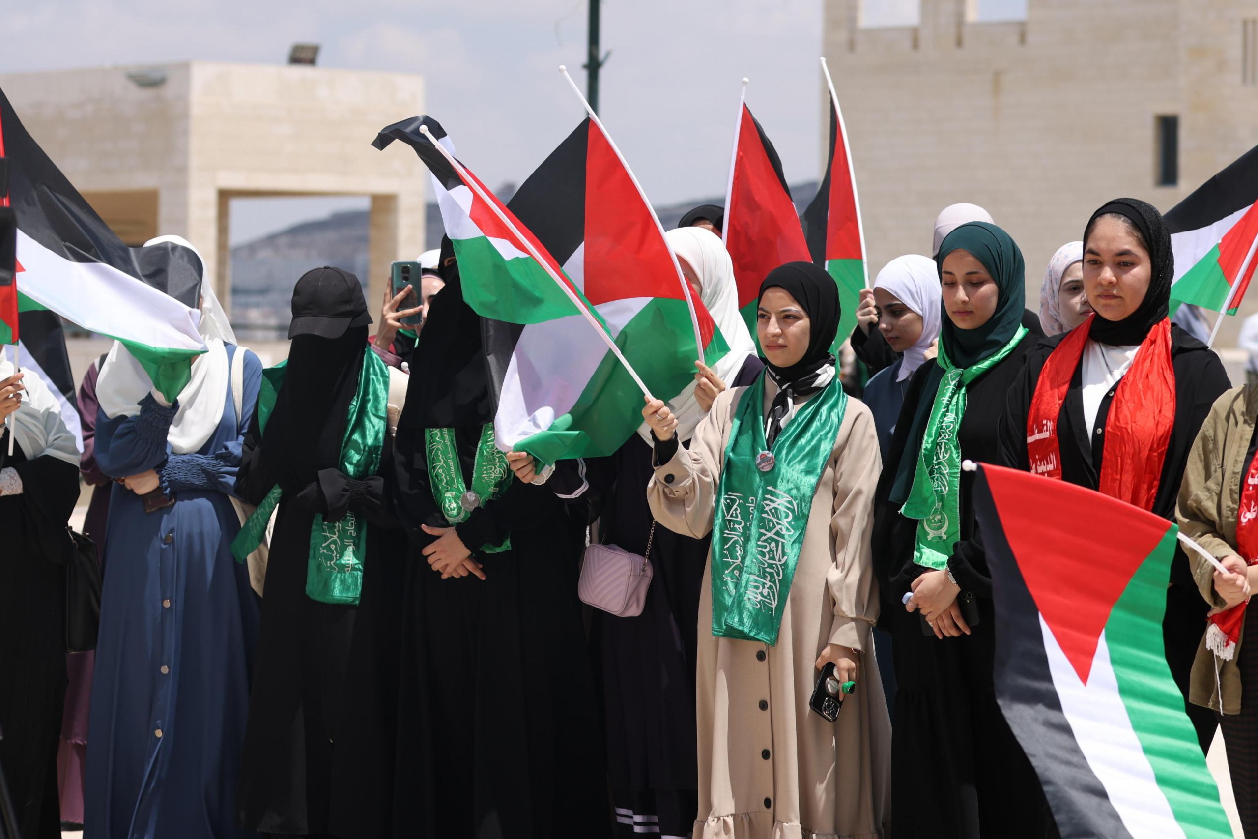 Nelle foto Ansa Epa, la protesta degli studenti palestinesi presso l’Università Al Najah nella città di Nablus, in Cisgiordania dopo l’attacco aereo israeliano sferratoncontro una scuola a Gaza, domenica 11 agosto 2024.