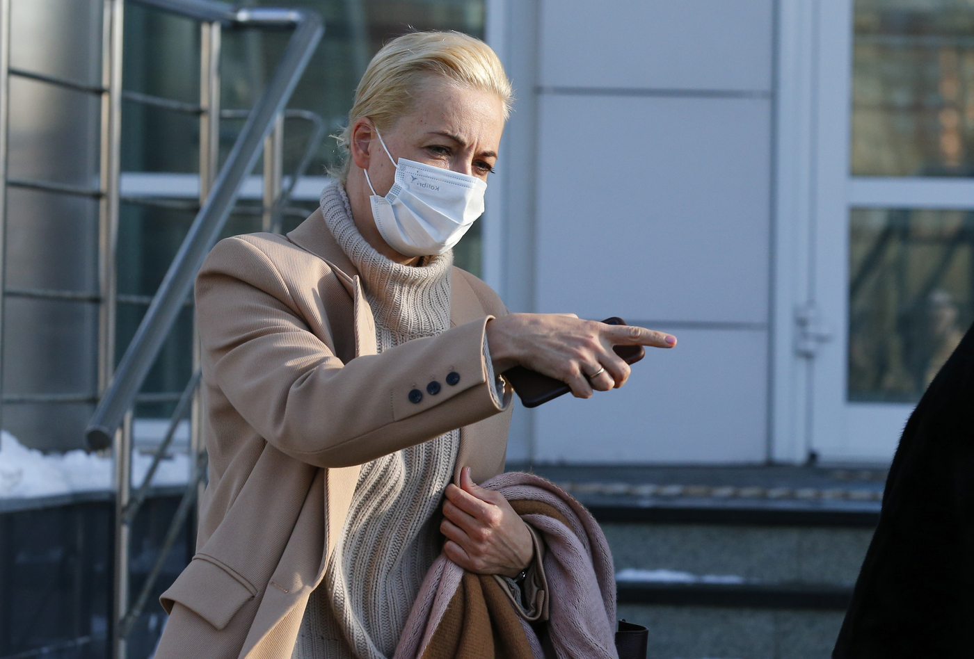 La polizia russa ha fermato e poi rilasciato anche la moglie di Navalny, Yulia Navalnaya, mentre andava insieme a un gruppo di manifestanti verso il carcere di Matrosskaya Tishina di Mosca, dove è rinchiuso l’oppositore. Se l’è cavata con una multa da poco più di 200 euro. (AP Photo/Andrew Lubimov, Dmitry Serebryakov; Mauro Scrobogna /LaPresse)