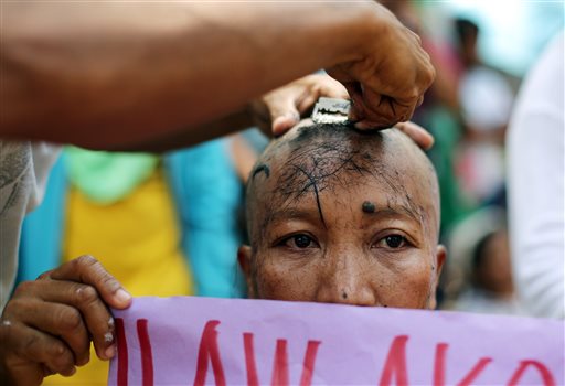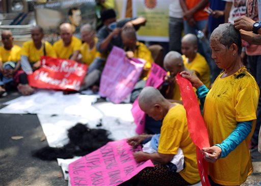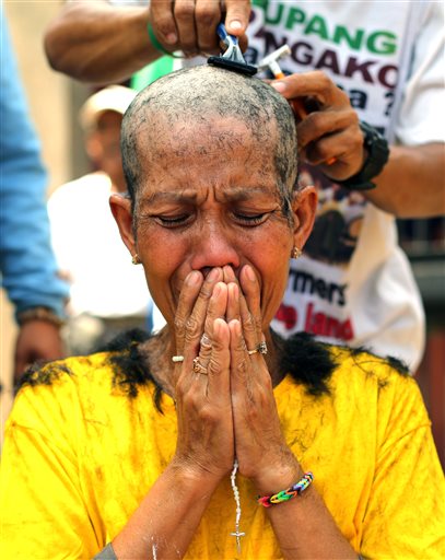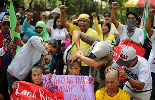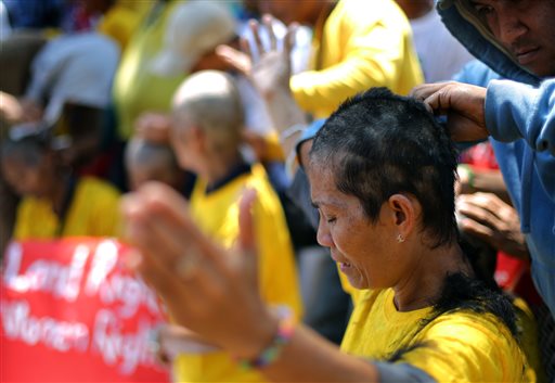 A Quezon city, vicino Manila, la capitale delle Filippine, 15 donne impegnate nell’agricoltura si sono tagliate i capelli, davanti alla Camera dei Rappresentanti, per sollecitare l’approvazione e l'estensione del Programma di riforma agraria