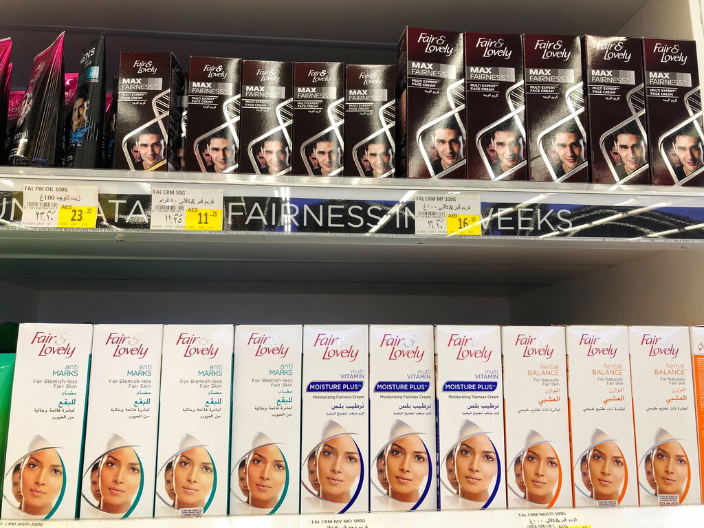 Creme che promettono una pelle più chiara sono esposte sugli scaffali di Dubai, negli Emirati Arabi Uniti. Sulla scia delle proteste di massa contro l'ingiustizia razziale negli Stati Uniti, aziende multinazionali come L’Oreal e Unilever, che producono e vendono prodotti dal nome Fair and Lovely, li stanno rinominando in Africa, Asia e Medio Oriente