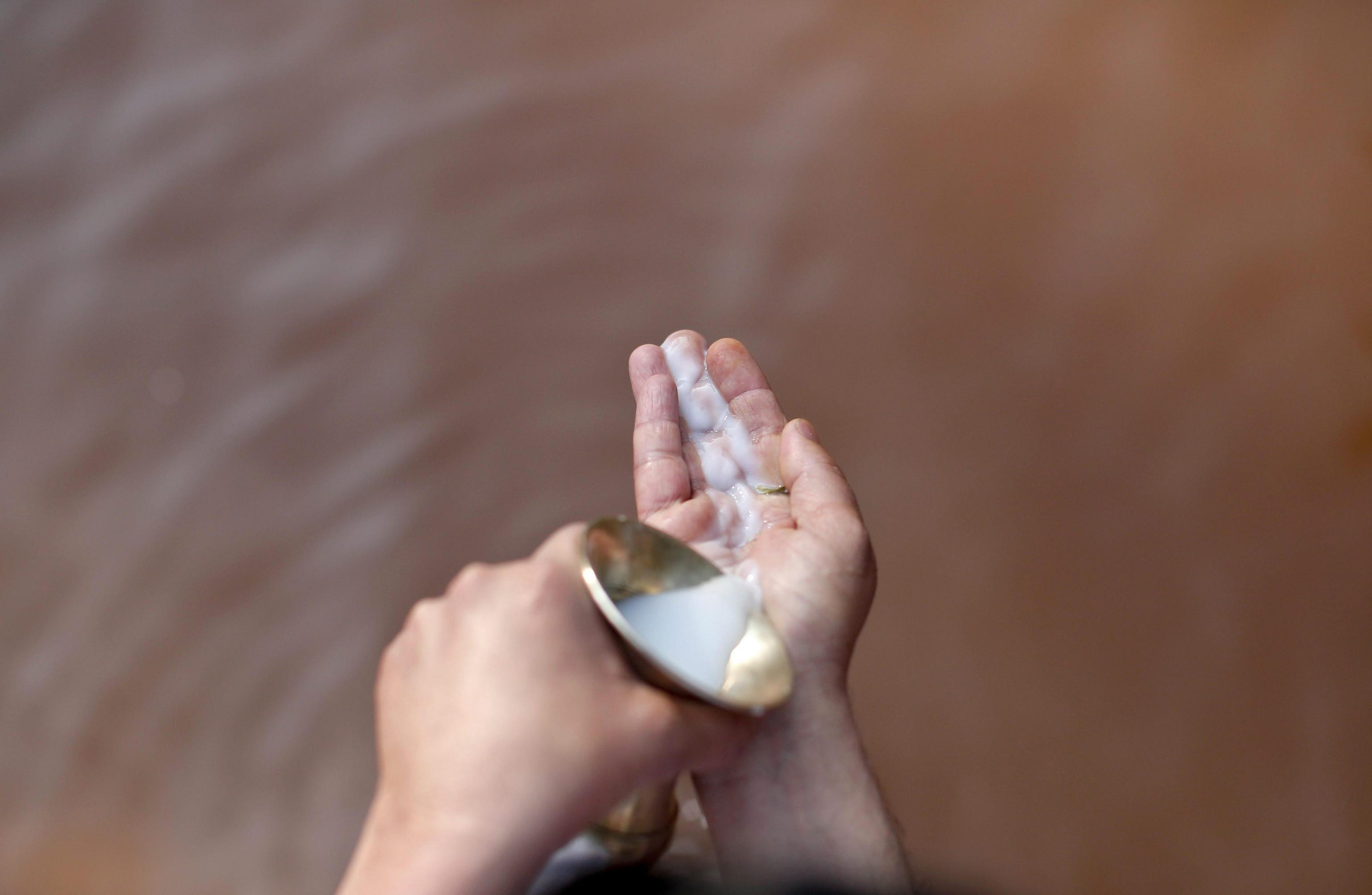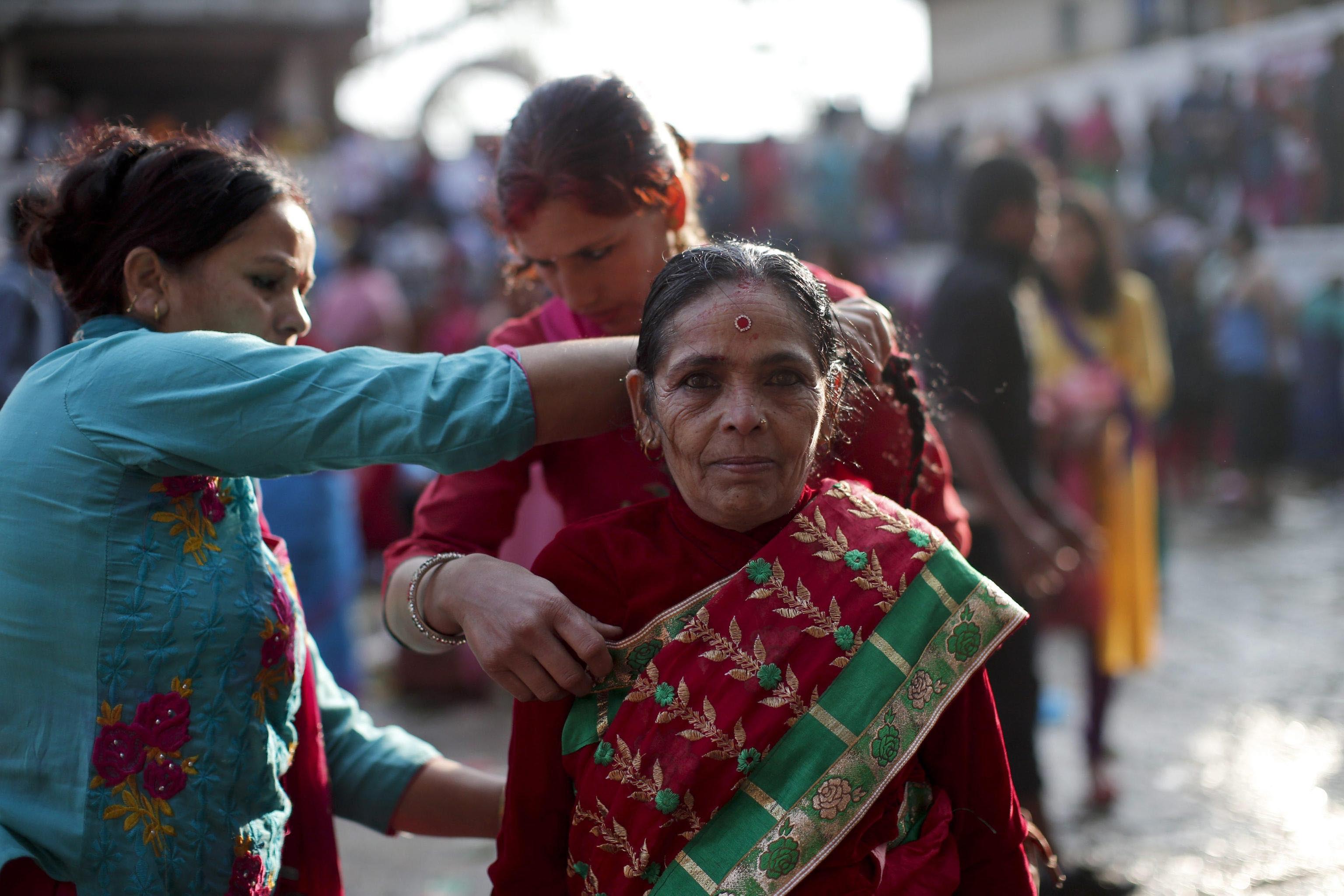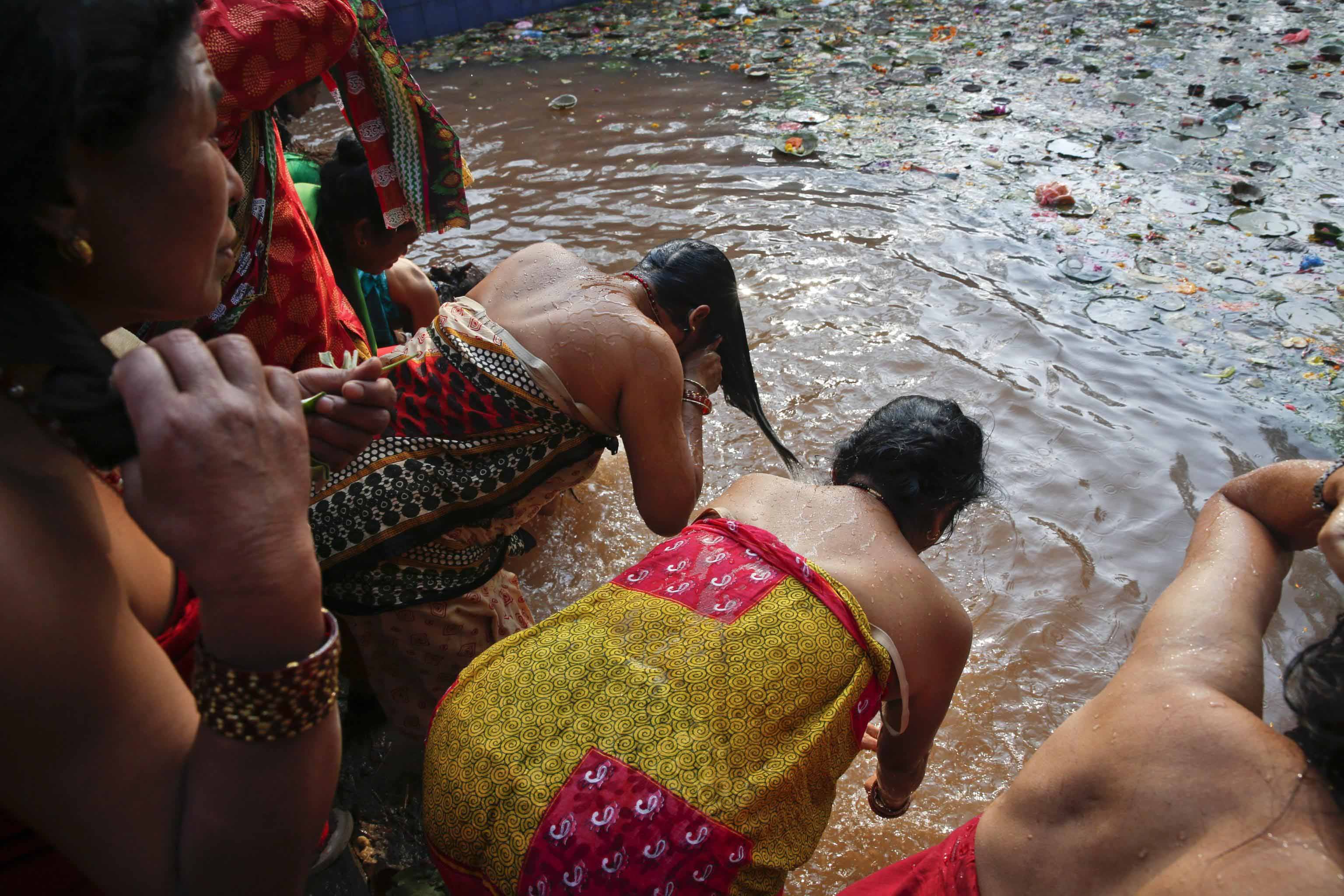 A Kathmandu, in Nepal, si svolge il bagno rituale nel santuario Mata Tirtha per celebrare la festa della mamma. Ci si guarda riflessi nell'acqua e secondo la tradizione è possibile vedere il volto della propria mamma sullo specchio d'acqua. È un modo per onorare e festeggiare le mamme che non sono più in vita e non possono essere omaggiate con regali e visite (Ansa foto).