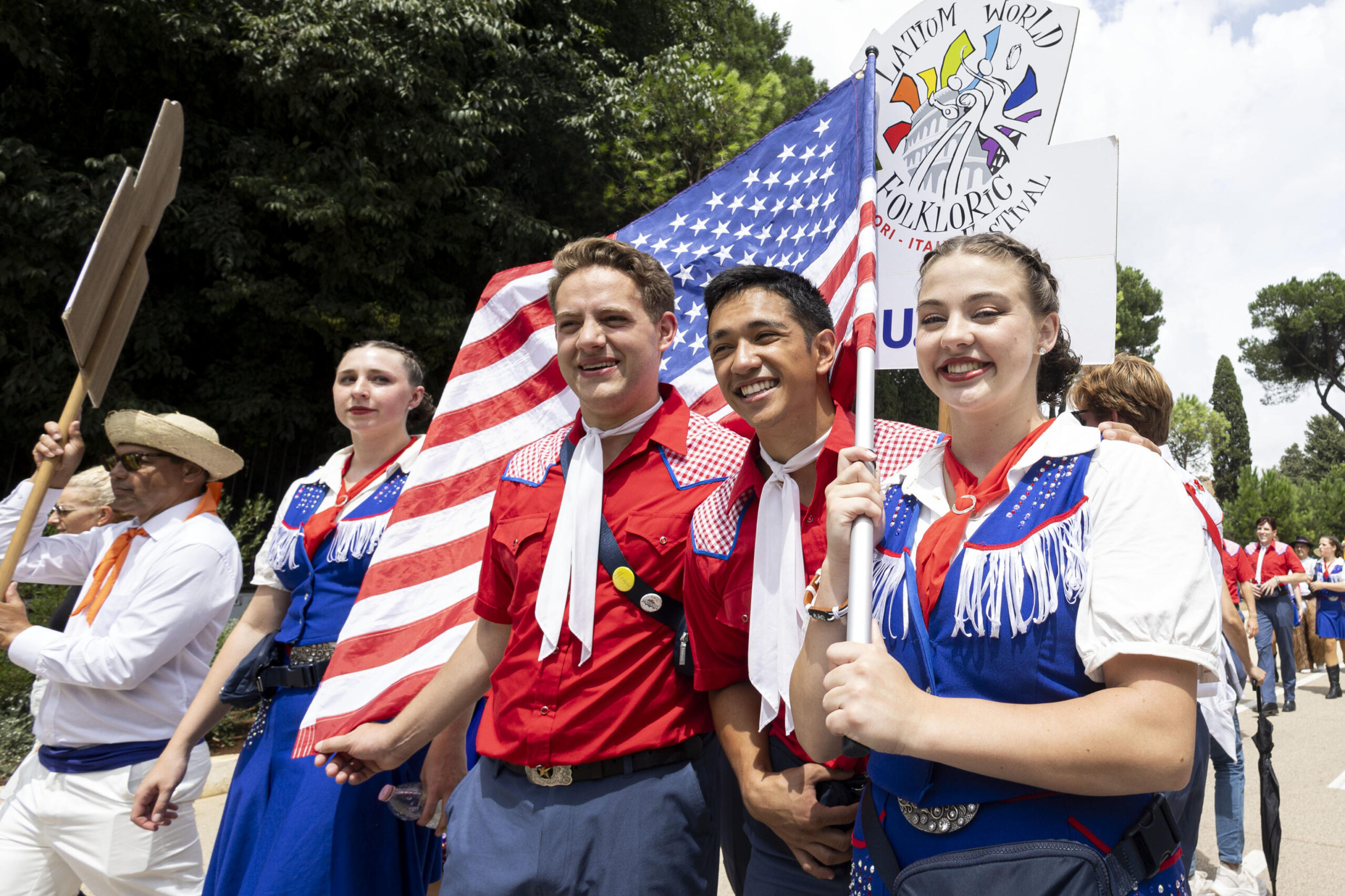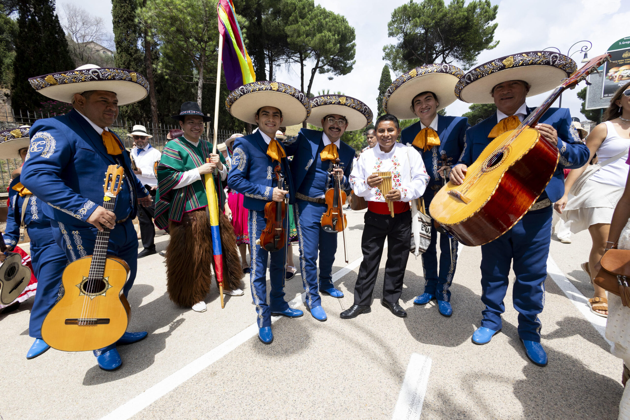 Roma appare nel suo splendore in condizioni climatiche settembrine quando invece siamo a fine luglio. Con le folate di vento si alzano bandiere di ogni nazione a indicare l’amore per la propria terra che non diventa nazionalismo ma don o reciproco.