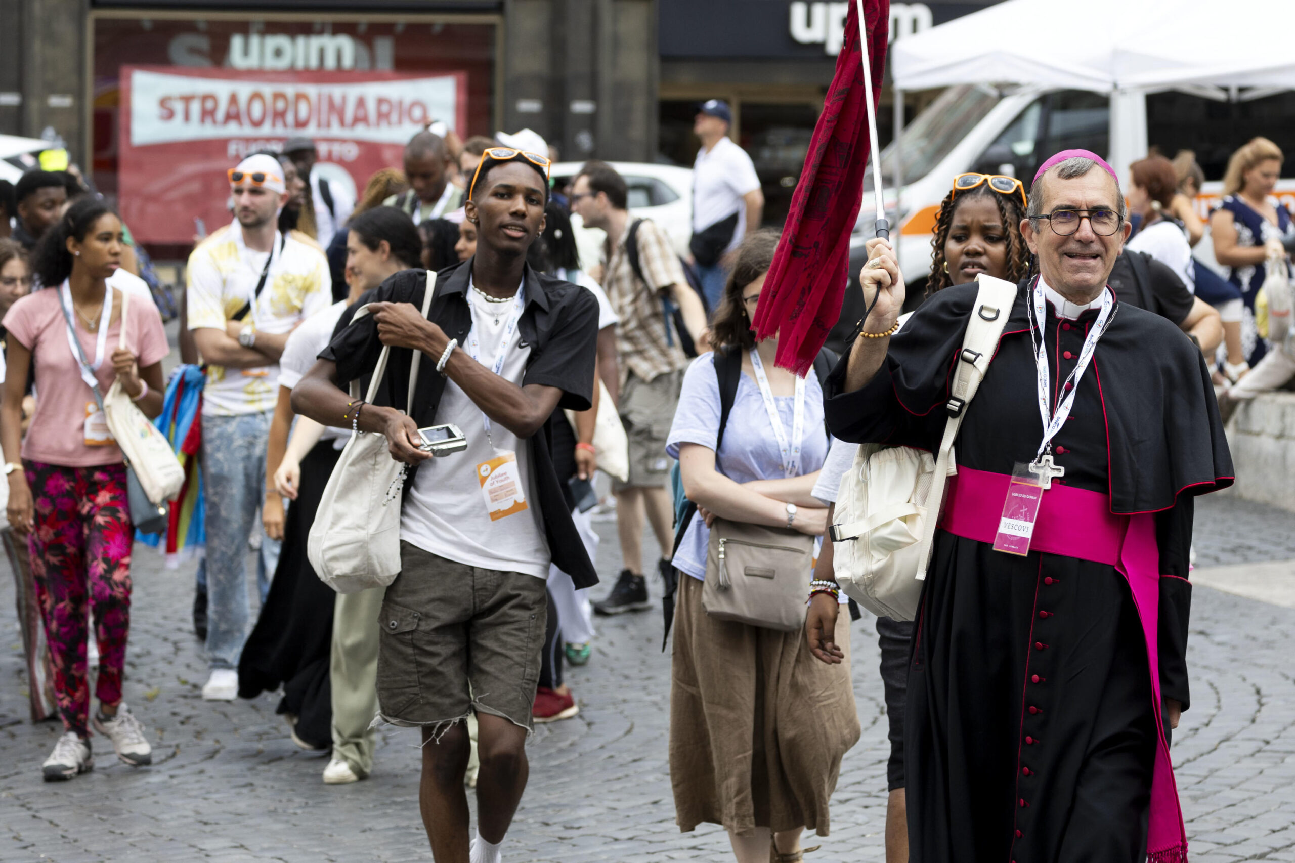 Migliaia di giovani arrivano a Roma da tutto il mondo per il Giubileo, con la città eterna che diventa l’esempio di una possibile unità di un’umanità da ricomporre mentre si addensano scenari asfissianti di guerra con i corifei che giustificano la logica delle armi.