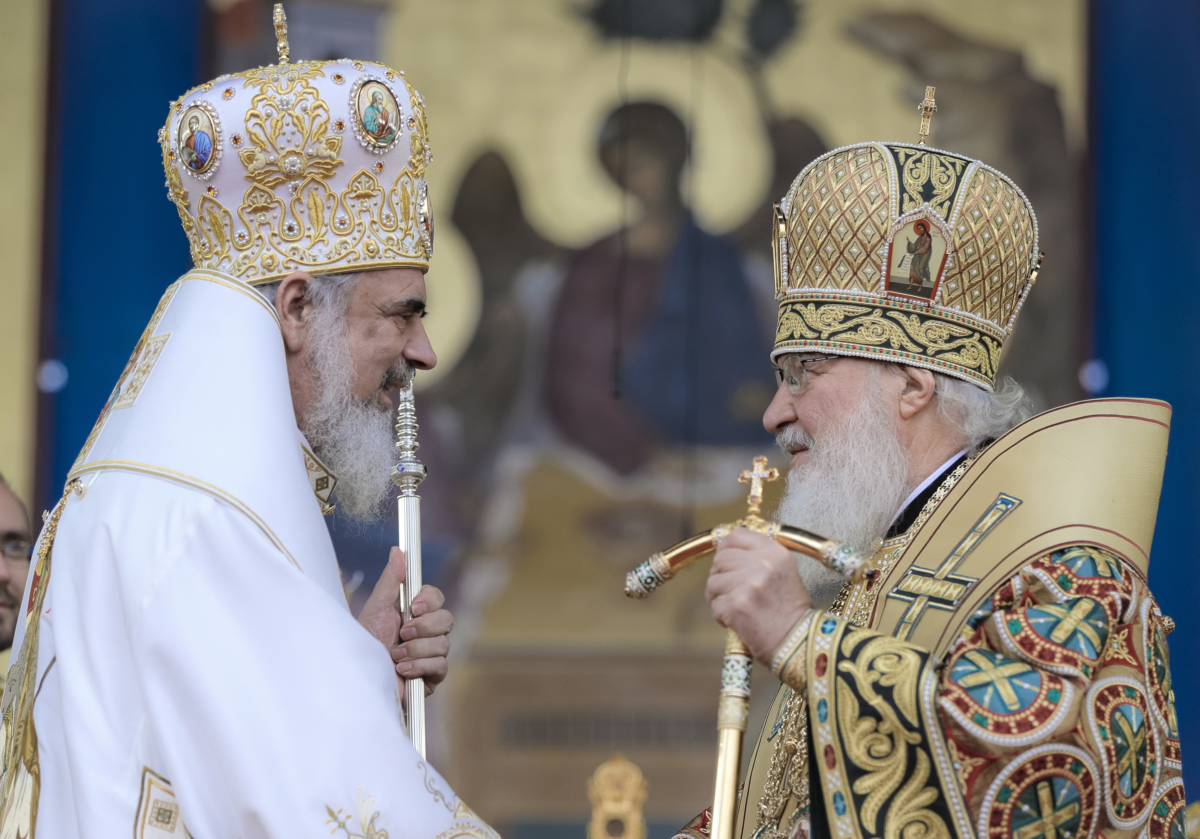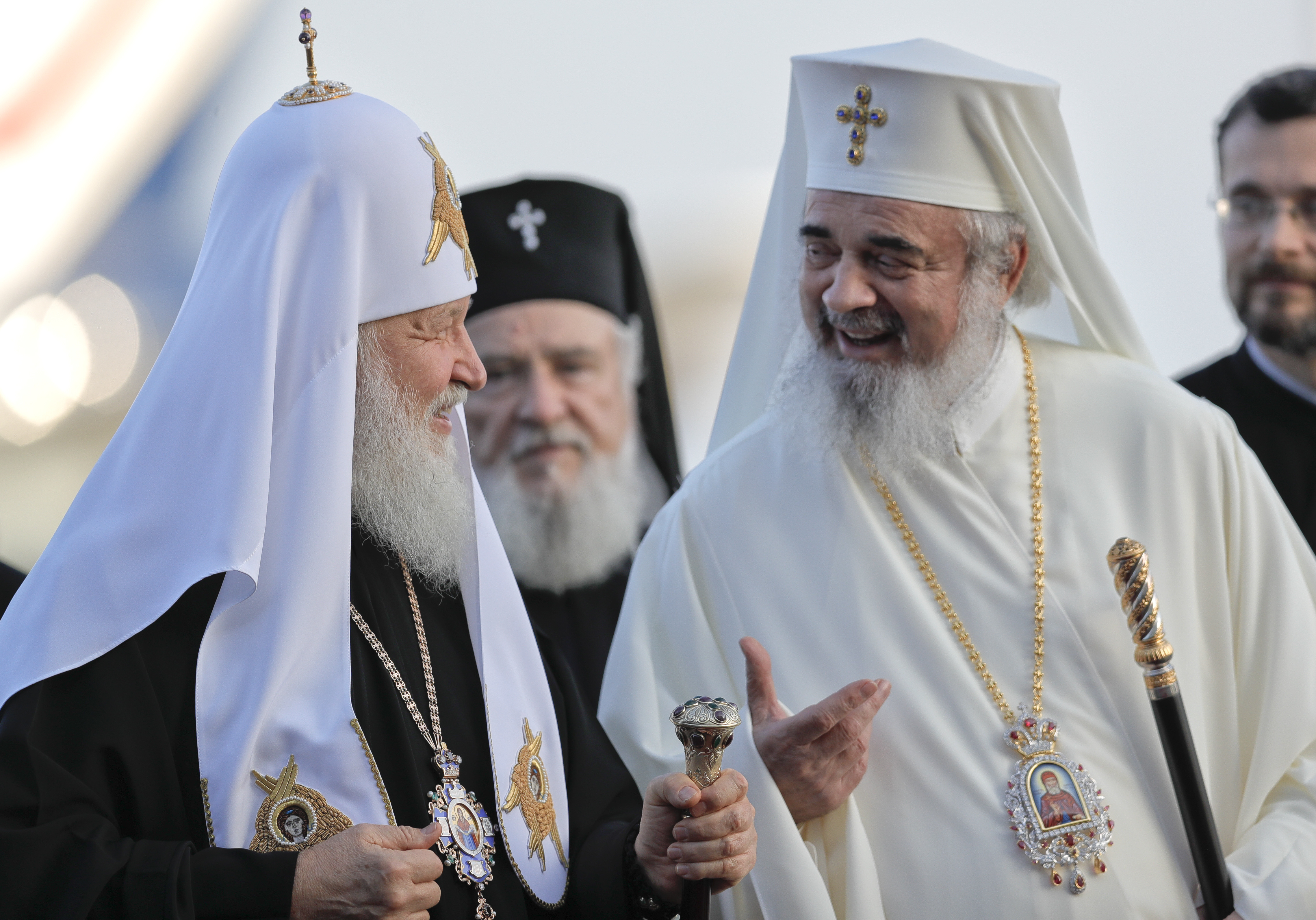 È la prima volta che un patriarca di Mosca dopo la caduta del comunismo si reca in Romania, Paese che vanta la seconda comunità ortodossa del mondo dopo la Russia. Il patriarca Kirill si è espresso a favore del dialogo e del rafforzamento dei legami tra le Chiese ortodosse di Russia e Romania. «Indipendentemente dal corso della storia, noi, i cristiani ortodossi che vivono in Paesi diversi, dobbiamo ricordare i nostri valori comuni», ha affermato Kirill incontrando lo scorso 26 ottobre a Bucarest il patriarca della Chiesa ortodossa romena Daniel. (foto Ap)