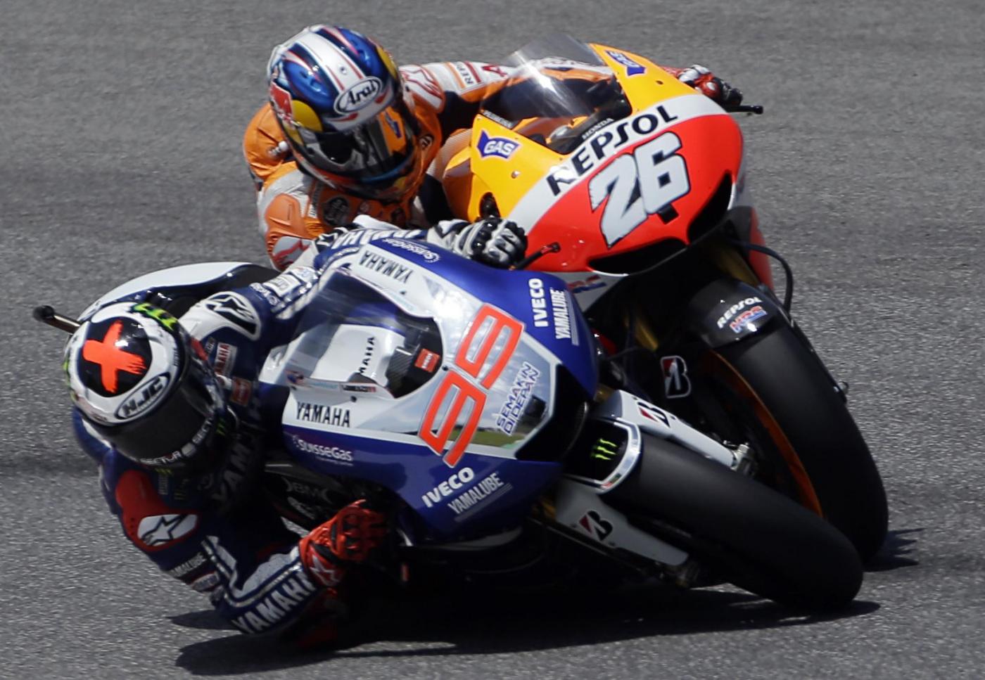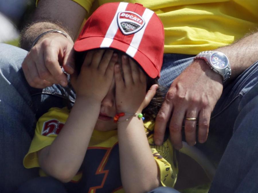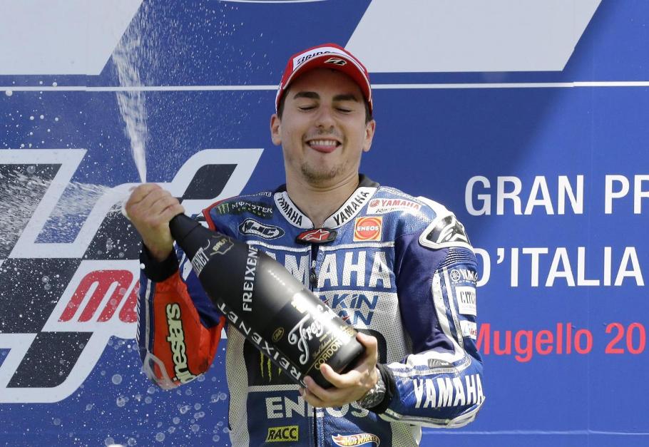 Al Mugello sale sul gradino più alto del podio Jorge Lorenzo. Niente da fare per Valentino Rossi, caduto alla prima curva dopo essere stato toccato da Bautista (foto LaPresse).