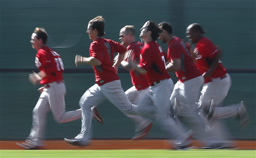 Nel villaggio Shertha dello Stato del Gujarat, in India, alcune donne dispongono a terra dei peperoncini ad essiccare; a Pechino le hostess del Congresso nazionale annuale del popolo si prendono una pausa; una modella sfila sulle paserelle londinesi con un abito di John Rocha; gli allievi della scuola di samba Unidos da Tijuca sfilano mascherati a Rio de Janeiro; in Arizona i giocatori del Cincinnati reds corrono durante un allenamento. Il rosso è il colore che li accomuna tutti (foto Ap).