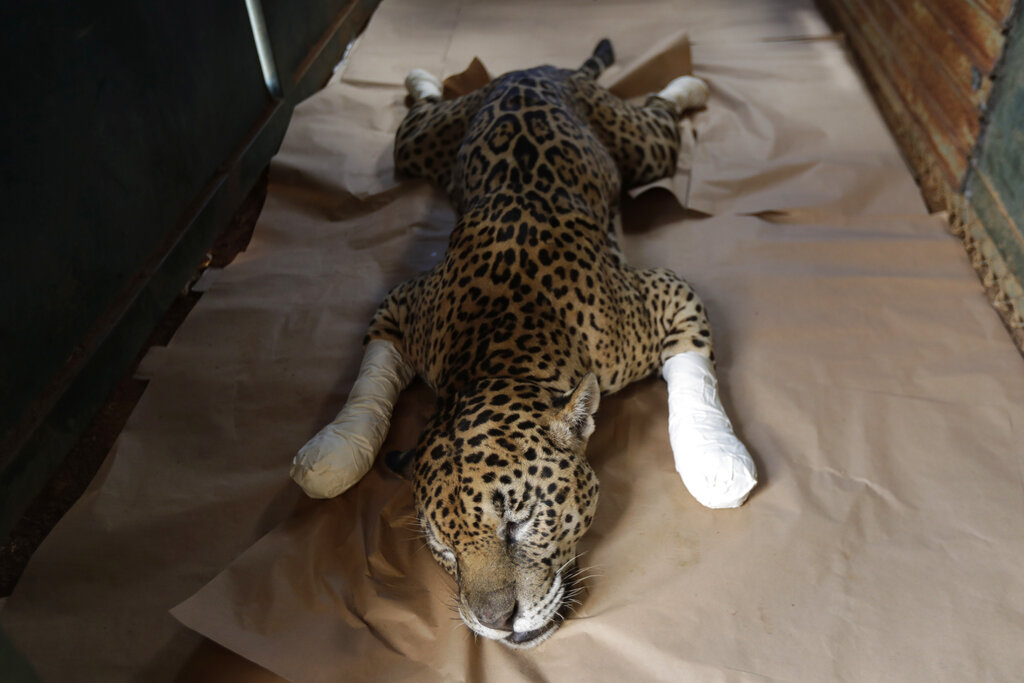 Due giaguari, un maschio e una femmina, salvati dal grande incendio del Pantanal (Brasile): stanno ricevendo un trattamento con laser, terapie di ozono e iniezioni di cellule per accelerare il recupero dei tessuti bruciati.