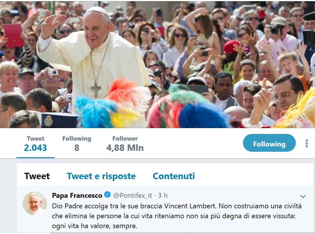 Dopo la sospensione dell’alimentazione e dell’idratazione, decisa il 2 luglio dai giudici, Vincent Lambert è deceduto. Il 42enne viveva in uno stato di coscienza minimo e si era ritrovato suo malgrado al centro di una battaglia legale tra la moglie Rebecca, che chiedeva la sospensione delle cure, e dei genitori, che si erano appellati anche all’Onu per difendere la vita del figlio. Alla fine, poco meno di dieci giorni fa, il tribunale aveva decretato la sospensione dell’idratazione e dell’alimentazione, che ha portato alla morte dell’uomo. Tanti i messaggi di cordoglio pervenuti alla famiglia. Anche papa Francesco è intervenuto, con un post su Twitter: «Dio Padre accolga tra le sue braccia Vincent Lambert. Non costruiamo una civiltà che elimina le persone la cui vita riteniamo non sia più degna di essere vissuta: ogni vita ha valore, sempre».