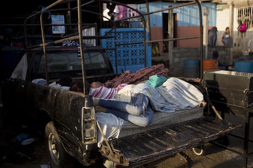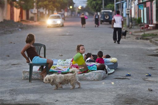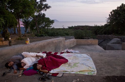Dopo il terremoto che ha colpito qualche giorno fa la capitale del Nicaragua molte persone sono ancora sfollate e dormono in rifugi di fortuna. L'epicentro del terremoto sarebbe stato individuato nei pressi del vulcano Apoyeque, non lontano dal Nord del Cile, Paese colpito da due violenti terremoti all'inizio del mese (foto Ap).