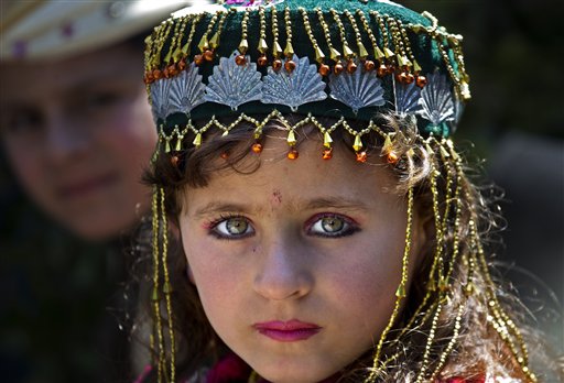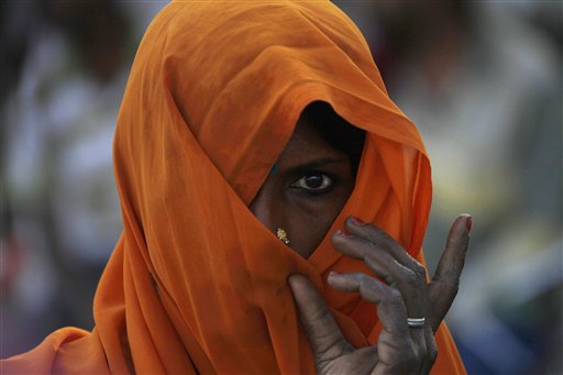 Una ragazzina si aggiusta il burqa a Kabul, Afghanistan. Un manifestante egiziano protesta contro il presidente Morsi. Una donna indiana sbircia attraverso il velo alla periferia di Allahabad, in India. Una bambina pakistana torna a scuola dopo aver vissuto come sfollata al confine con l'Afghanistan (foto Ap).