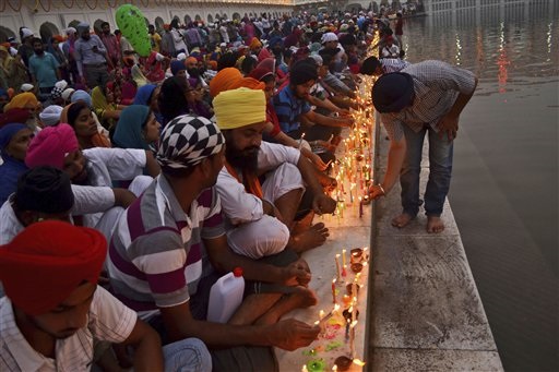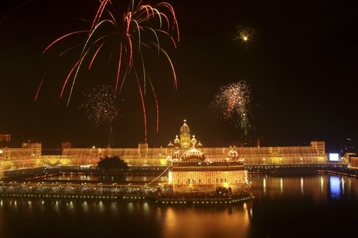 Tante luci, candele e fuochi di artificio, in India, in occasione delle celebrazioni per l'anniversario della nascita di Guru Ram Das, il quarto dei dieci guru del sihismo, ad Amritsar (foto Ap).