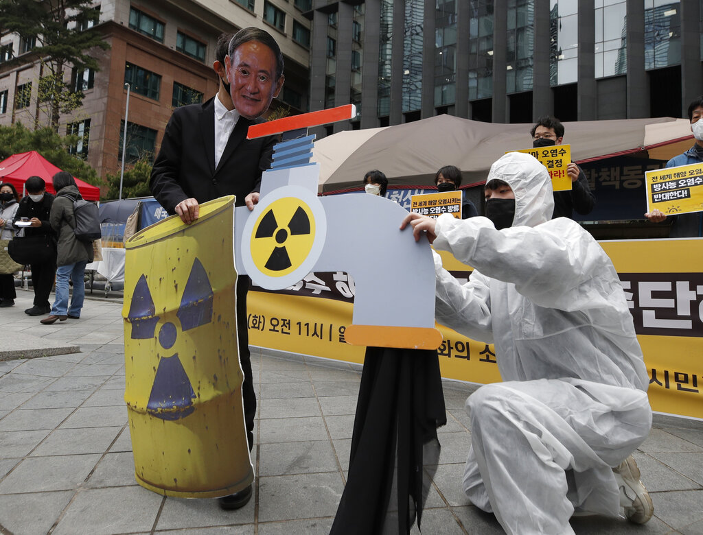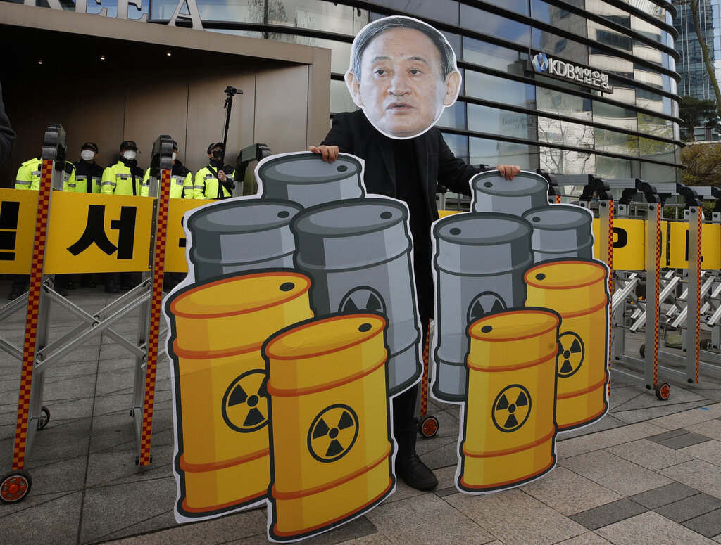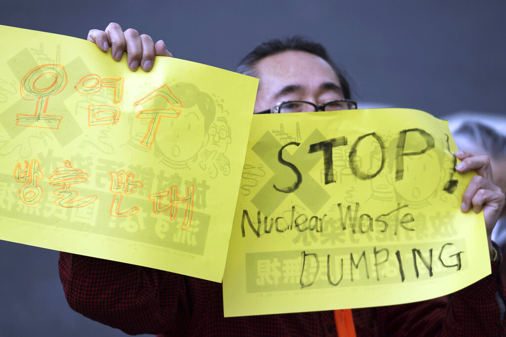 La decisione sullo smaltimento delle acque radioattive è stata ritardata per dieci anni a causa delle preoccupazioni e delle proteste per la sicurezza, ma è diventata sempre più urgente perché l’acqua inquinata non può essere mantenuta indefinitamente nelle grandi cisterne intorno alla centrale. Il governo sostiene che il rilascio nell’oceano sarà graduale, diluito nell’arco di due anni, per cui non aumenterà in modo significativo il livello di radioattività naturale delle acque (AP Photo / Lee Jin-man)