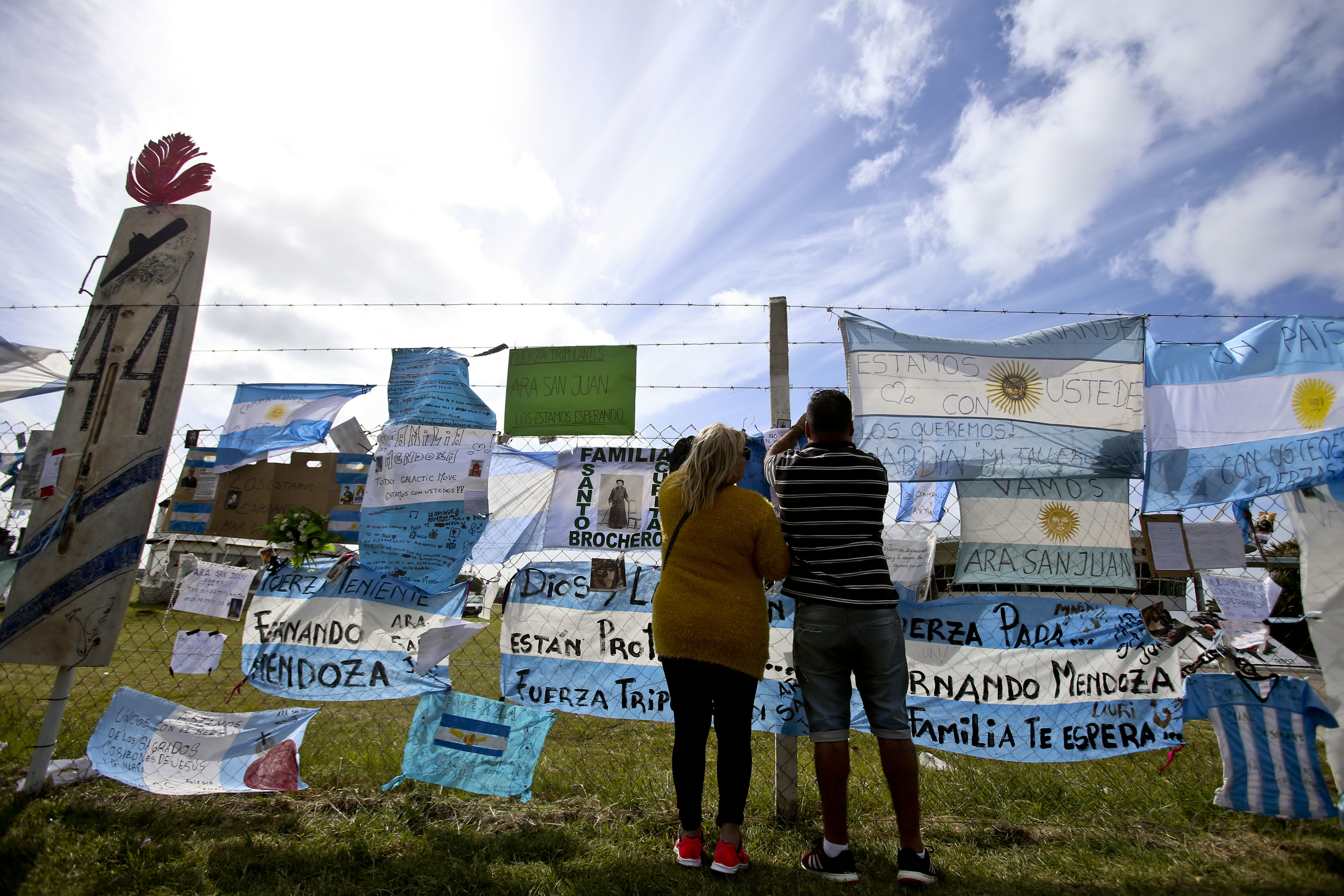 Immagini di cordoglio e preghiera giungono dai pressi della Marina militare a Mar del Plata, in Argentina, dove si radunano parenti e amici del 44 membri dell’equipaggio del sottomarino Ara San Juan disperso da 11 giorni a 400 km dalla costa nella zona del golfo San Jorge. Ieri è stato rivelato un segnale, un’anomalia idroacustica, ritenuto compatibile con un’esplosione. Sono state messe da parte le varie ipotesi complottistiche di un attacco militare contro il sottomarino. Nonostante tutto continuano le ricerche anche grazie agli aiuti di Usa, Inghilterra, Francia, Germania, Brasile, Cile, Perù, Colombia e Uruguay. Il problema è che queste ricerche trattano una zona grande come l’Europa centrale. (foto Ap)