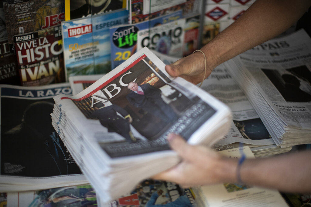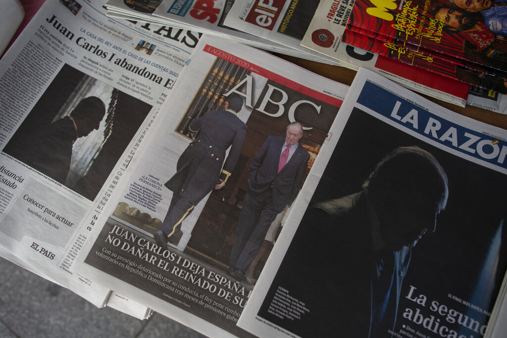 Le prime pagine dei giornali spagnoli riportano la notizia che l’ex monarca, Juan Carlos I, è sparito dopo aver annunciato di essere in procinto di lasciare il Paese per una destinazione sconosciuta, proprio nel mezzo di uno scandalo finanziario. Dimostrazioni contro la monarchia sfilano nelle strade di un Paese angosciato e diviso (Foto AP / Manu Fernandez)