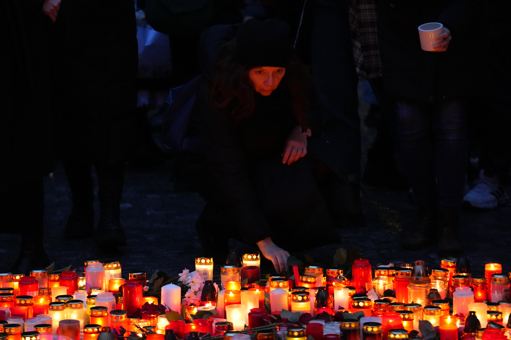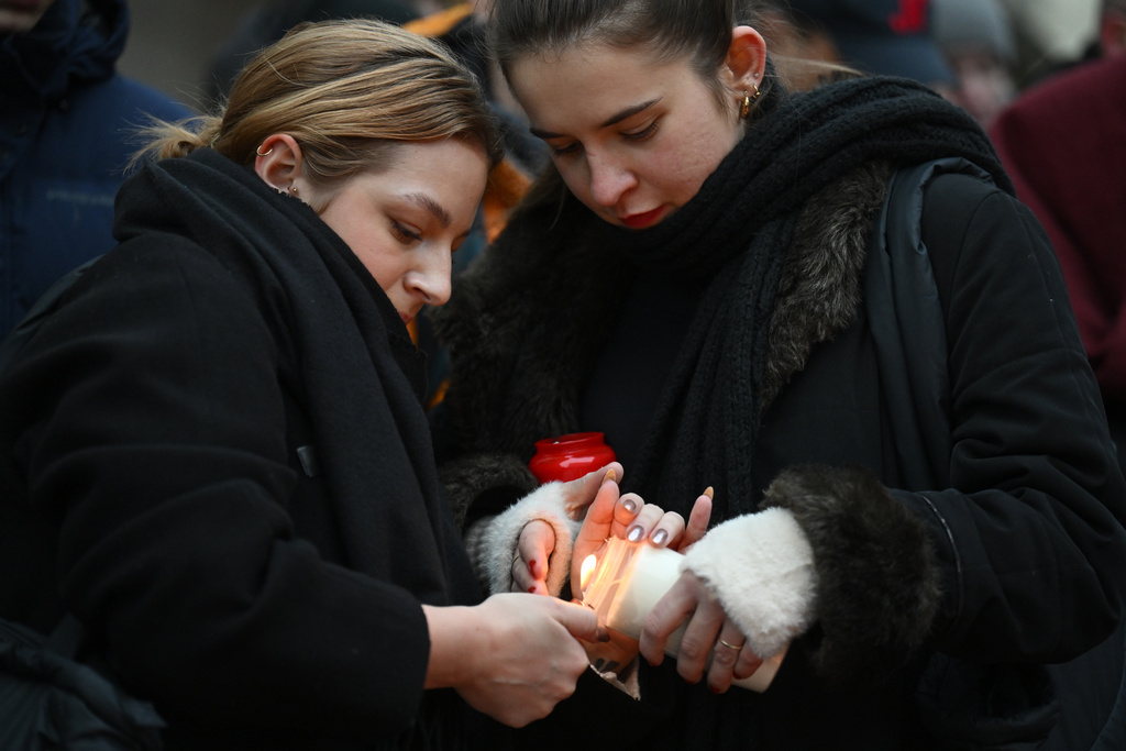 Una donna piange fuori dalla sede della Charles University  per le vittime della sparatoria di massa a Praga, in Repubblica Ceca. Una bambina lascia una rosa. Tante persone accendono candele in silenzio. In molti oggi, 22 dicembre 2023, si sono riuniti all’esterno dell’edificio della Facoltà di Filosofia, per commemorare e piangere insieme le vittime innocenti.