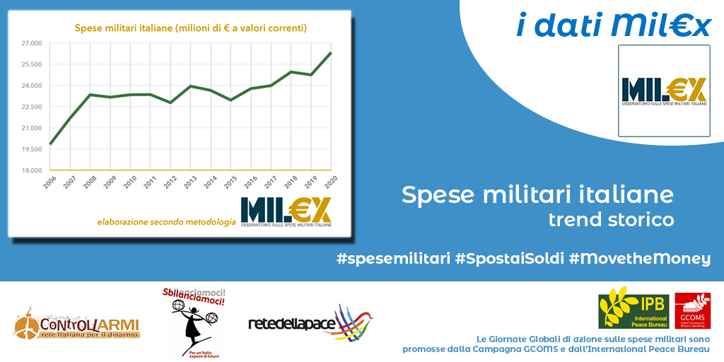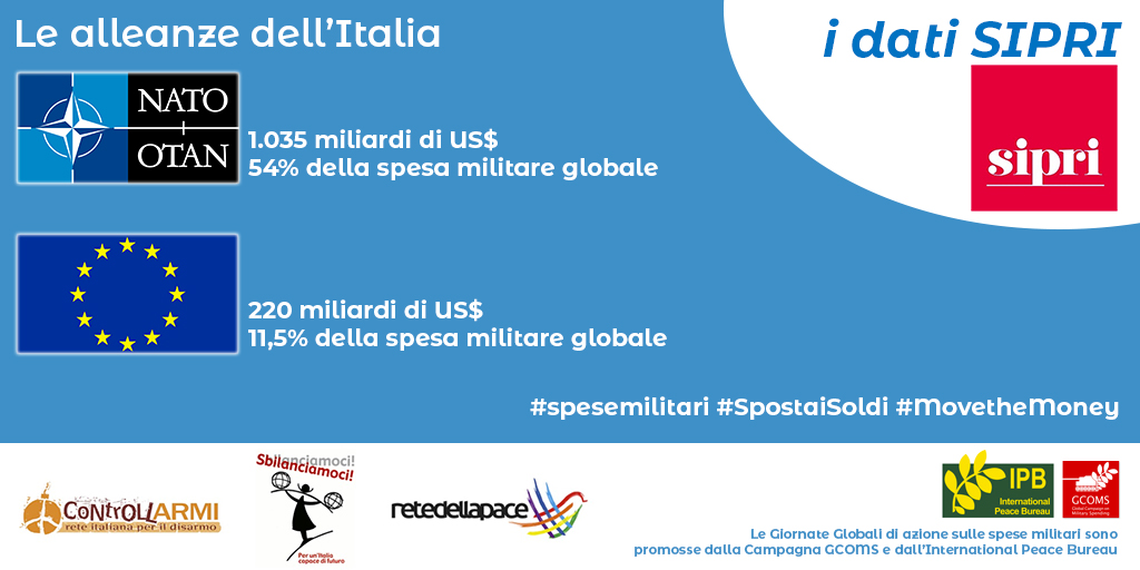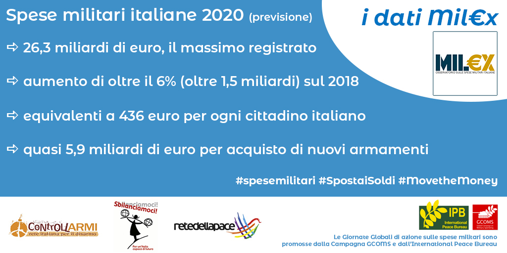 Una Campagna promossa dall’International Peace Bureau (IPB) e rilanciata nel nostro Paese da Rete italiana per il disarmo con Rete della Pace e Sbilanciamoci per ribadire quanto sia urgente spostare i fondi dai bilanci militari verso altri obiettivi, quali il servizio sanitario nazionale e le urgenze in campo i sociale e ambientale.