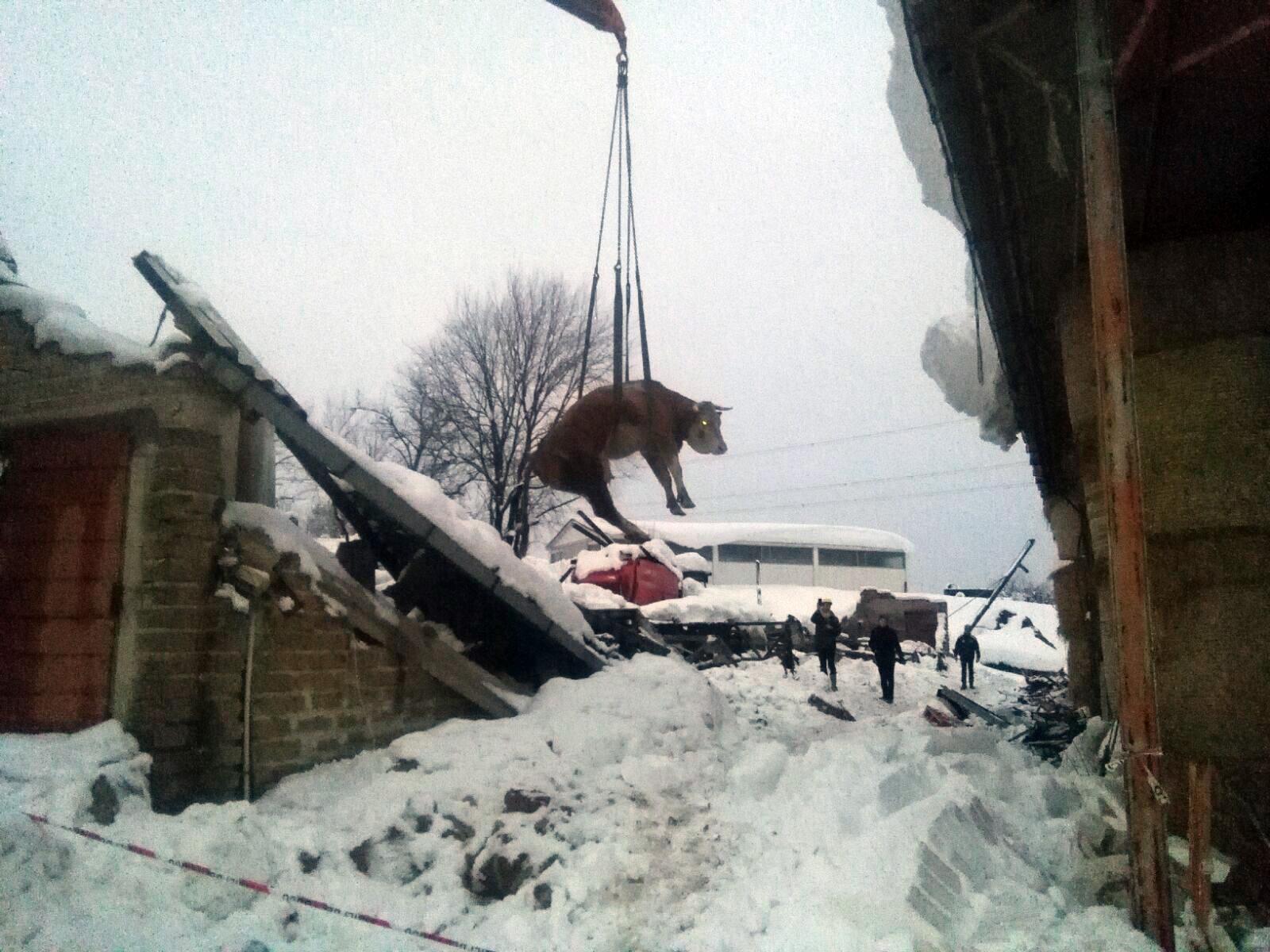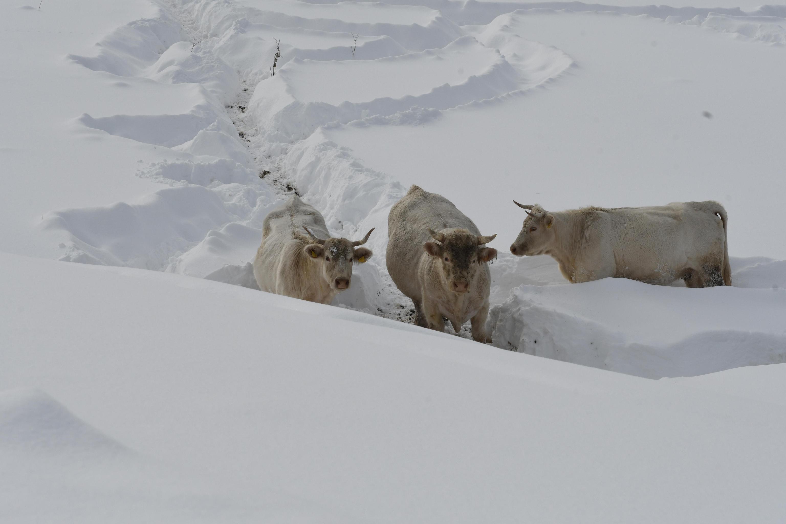 Si interviene per salvare gli animali dopo il crollo delle stalle in cui erano ospitati a causa del terremoto o delle nevicate insolitamente abbondanti. Sono circa tremila secondo la Coldiretti le aziende agricole e le stalle sepolte dalla neve nelle aree del Lazio, Umbria, Marche e Abruzzo colpite dal terremoto dove si contano casi di isolamento, nuovi crolli, decine di mucche e pecore morte e ferite, difficoltà per garantire l’alimentazione degli animali, ma anche per le consegne con tonnellate di latte che da giorni si è costretti a gettare a causa dell’isolamento e delle difficoltà di circolazione. (foto Ansa)