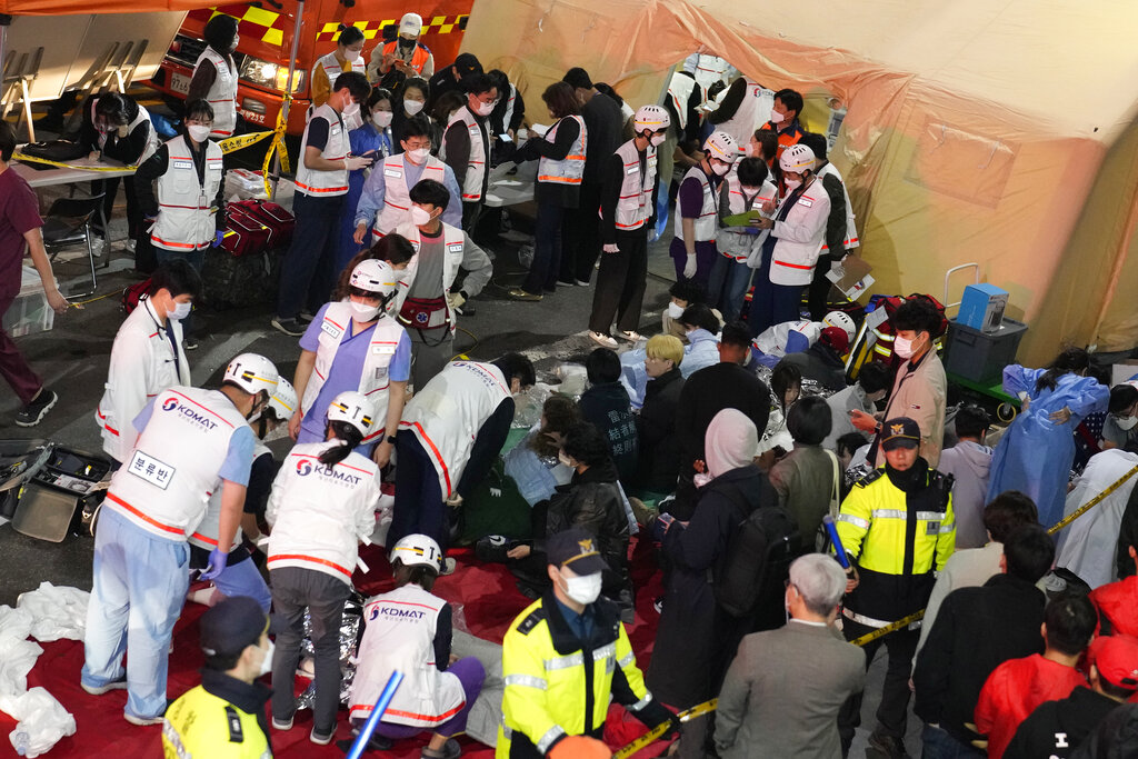 Sono 153 i morti legati alla calca creatasi nella notte a Itaewon, a Seul, in occasione di un evento per festeggiare Halloween. Questo è l’ultimo aggiornamento fornito dalle autorità locali, secondo cui le vittime di nazionalità straniera sono 22. Secondo i media locali, sabato sera nelle strette vie di Itaewon c’erano circa 100mila persone. Poco dopo le 10 – non è ancora chiaro per quale motivo – in una via non più larga di 4 metri e in pendenza la pressione della folla ha cominciato a crescere e centinaia di persone sono rimaste schiacciate o calpestate. Non è chiaro, ma la stessa cosa potrebbe essere successa anche in altri vicoli della zona. La maggior parte delle persone morte aveva tra i venti e i trent’anni. Il governo sudcoreano ha deciso sette giorni di lutto nazionale. Il presidente Yoon Suk-yeol ha affermato che questa tragedia “non avrebbe dovuto verificarsi”. Lee Sang-min, ministro dell’Interno, ha spiegato che “un numero considerevole” di polizia e forze di sicurezza era stato inviato ieri sera in un’altra zona della città, Gwanghwamun, dove erano previste manifestazioni e a Itaewon la situazione si riteneva sotto controllo. (Foto: Ap)