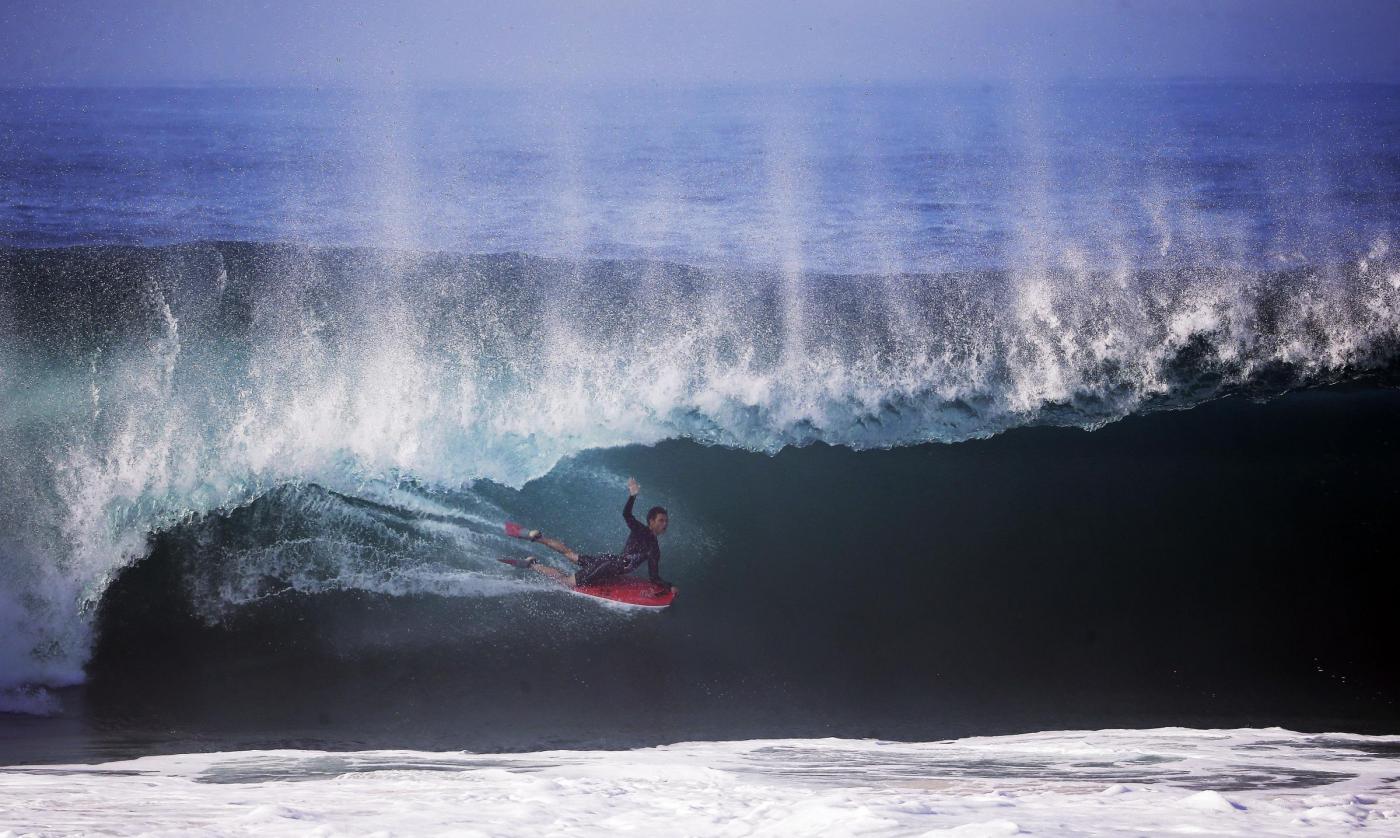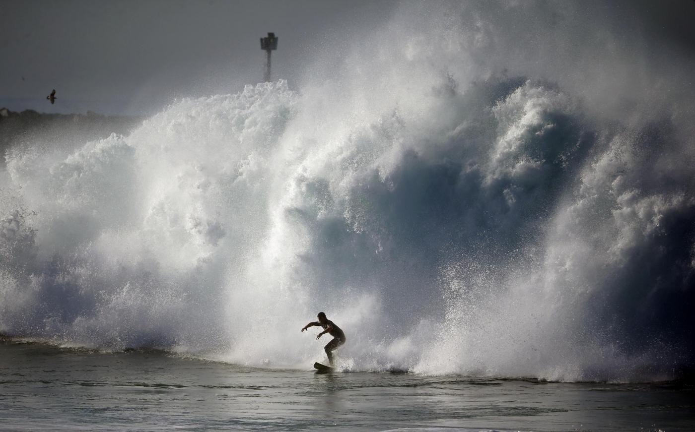 Onde alte anche cinque metri e raffiche di vento fino a 260 km orari non spaventano i surfisti californiani, che hanno atteso il passaggio dell'uragano Marie sulle spiagge di Newport Beach, per cavalcare l'onda giusta. E così mentre la popolazione erige barriere di sabbia per contrastare i venti e le mareggiate, gli appassionati delle onde si sono dati appuntamento per esibizioni mozzafiato e spericolate, coscienti però che il divertimento deve andare di pari passo con la sicurezza