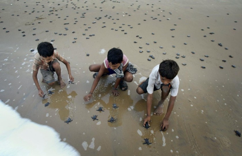 Una nuova generazione si appresta ad entrare in mare lungo coste dell'India meridionale. Un evento che regala speranza e incuriosisce, soprattutto i bambini.