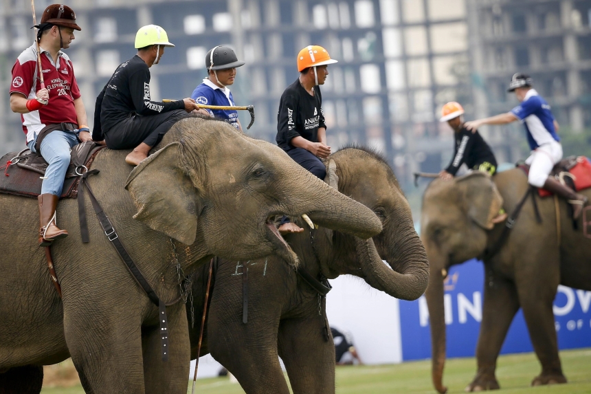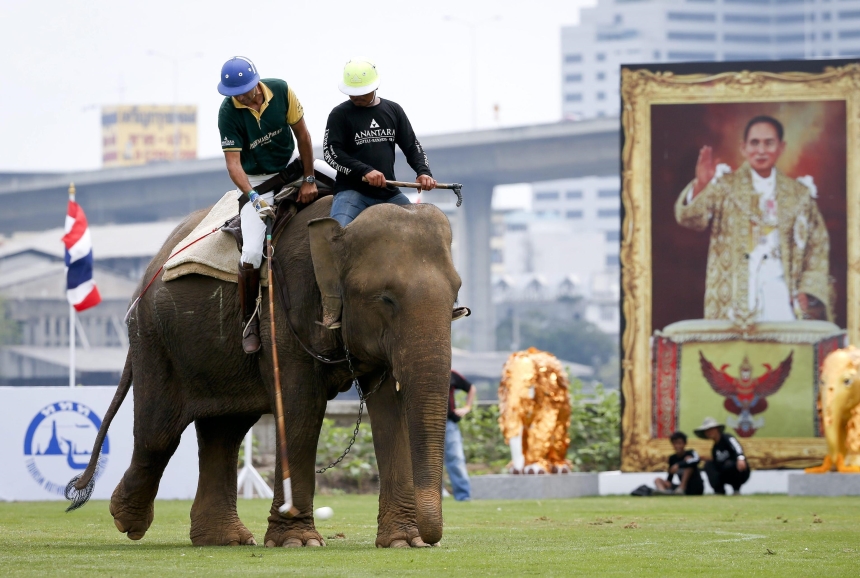 A Bangkok, in Thailandia, si svolge come ogni anno il King's cup elephant polo, giunto ormai alla sua 14a edizione. Protagonisti assoluti della manifestazione, gli elefanti arrivano da tutto il Paese, per un evento che vede in campo ben 10 squadre e circa 40 giocatori. La gara è volta a raccogliere fondi per migliorare le condizioni di vita degli elefanti stessi (foto Ansa).