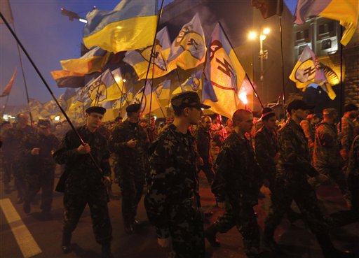 Più di cinquemila militanti nazionalisti hanno partecipato alla parata per celebrare il 72esimo anniversario della fondazione dell'UPA, l’Esercito insurrezionale ucraino che durante la guerra mondiale combatté contro Hitler e contro l’Armata Rossa. I manifestanti hanno chiesto di riconoscerli come "eroi della lotta per l'indipendenza del Paese". A Donetsk invece si continua a sparare e i ribelli filorussi, armati di tutto punto, non concedono tregua alla parte orientale del Paese